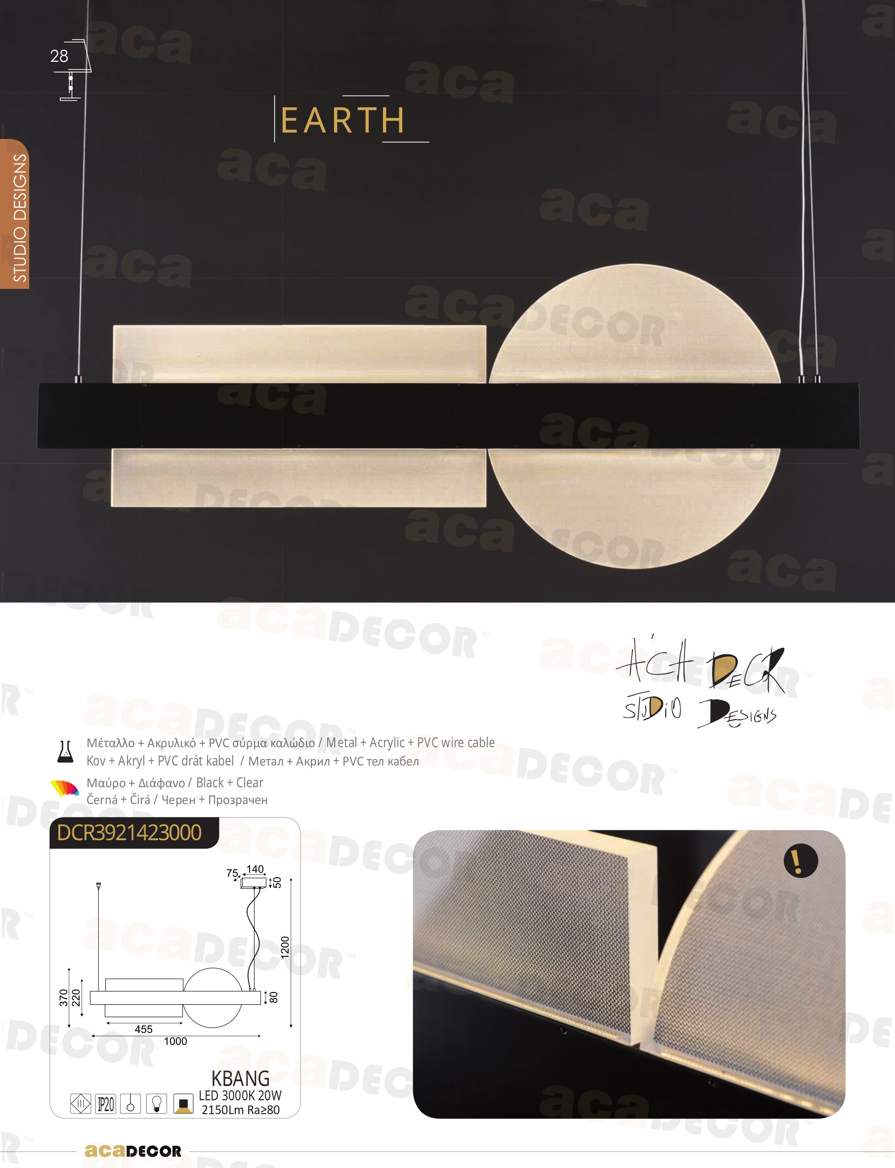 Лед полилей DCR39214 ще осигури комфорт и естетика във всяко помещение, в което се постави. Цялостната визия и дизайн на led лампата и вложените в изработката й материали, като метал в черен цвят, декоративни елементи от прозрачен текстуриран полимер, ще допринесат за един неповторим стил. Благодарение на дългогодишния опит в производството на лед осветление, качествените материали и строгия контрол на качеството на изработка на производителя ACA-Lighting (Гърция), DCR39214 е на високо европейско ниво.