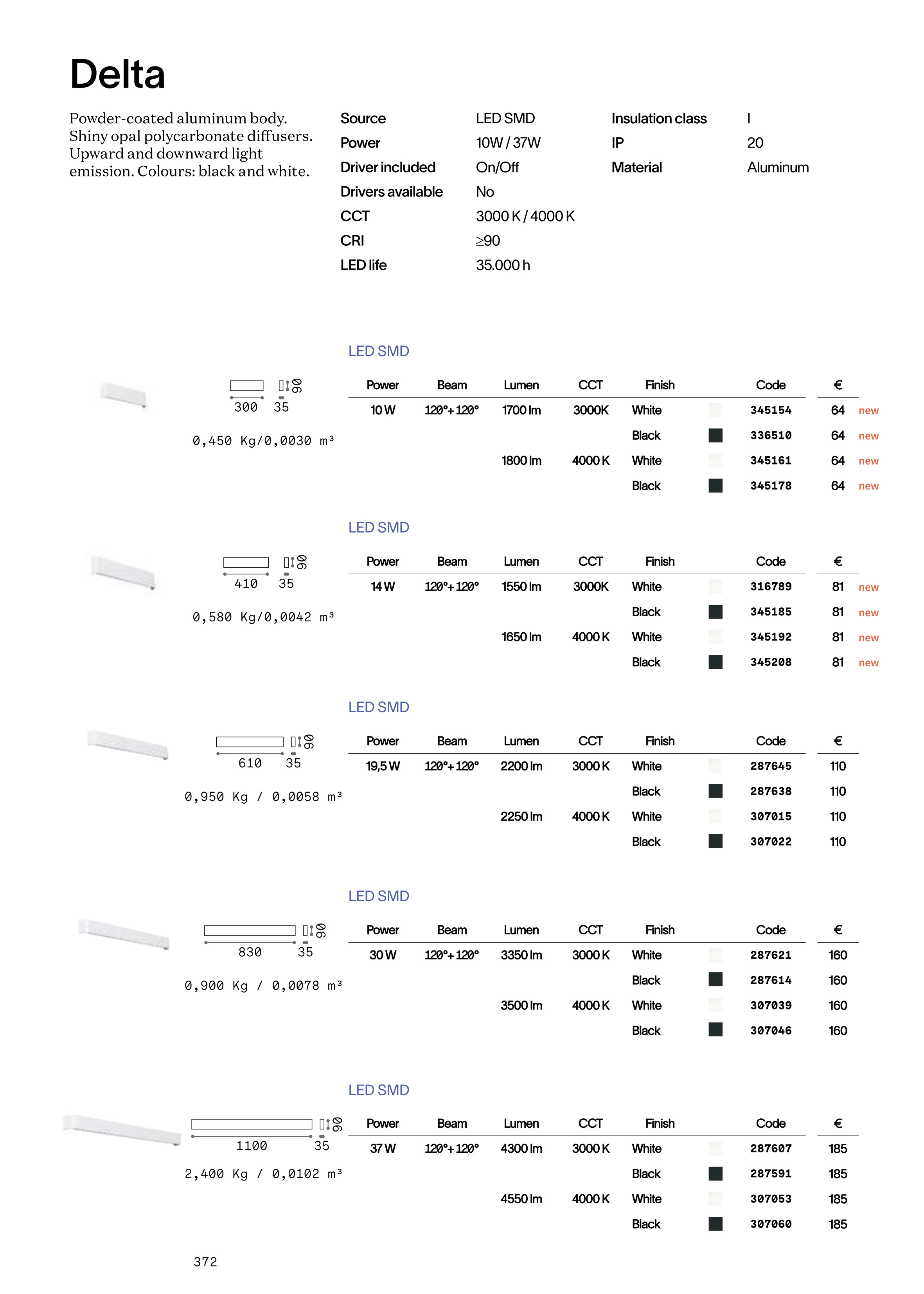 алуминий с прахово покритие в черно, дифузери в цвят блестящ опал, светлинна емисия нагоре и надолу