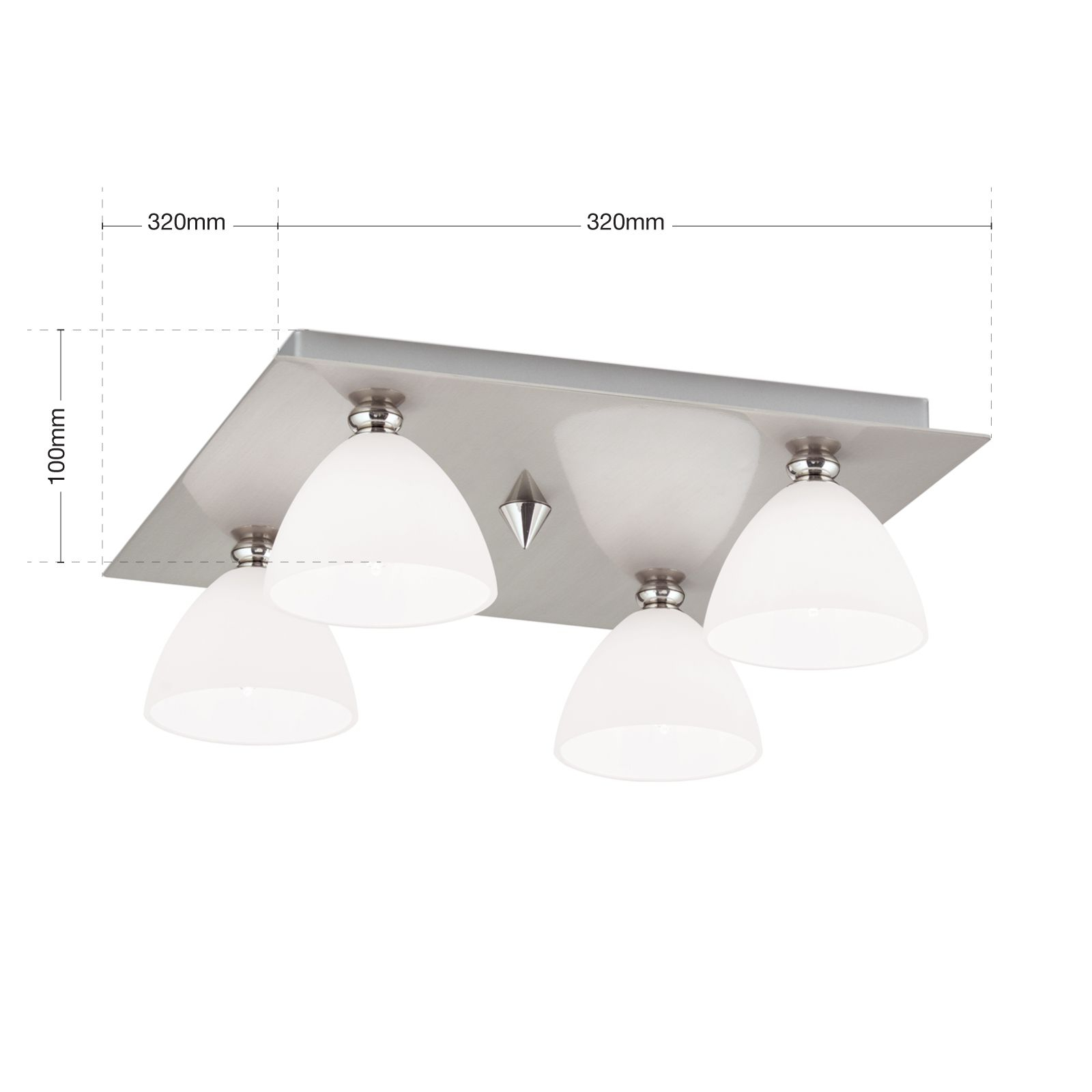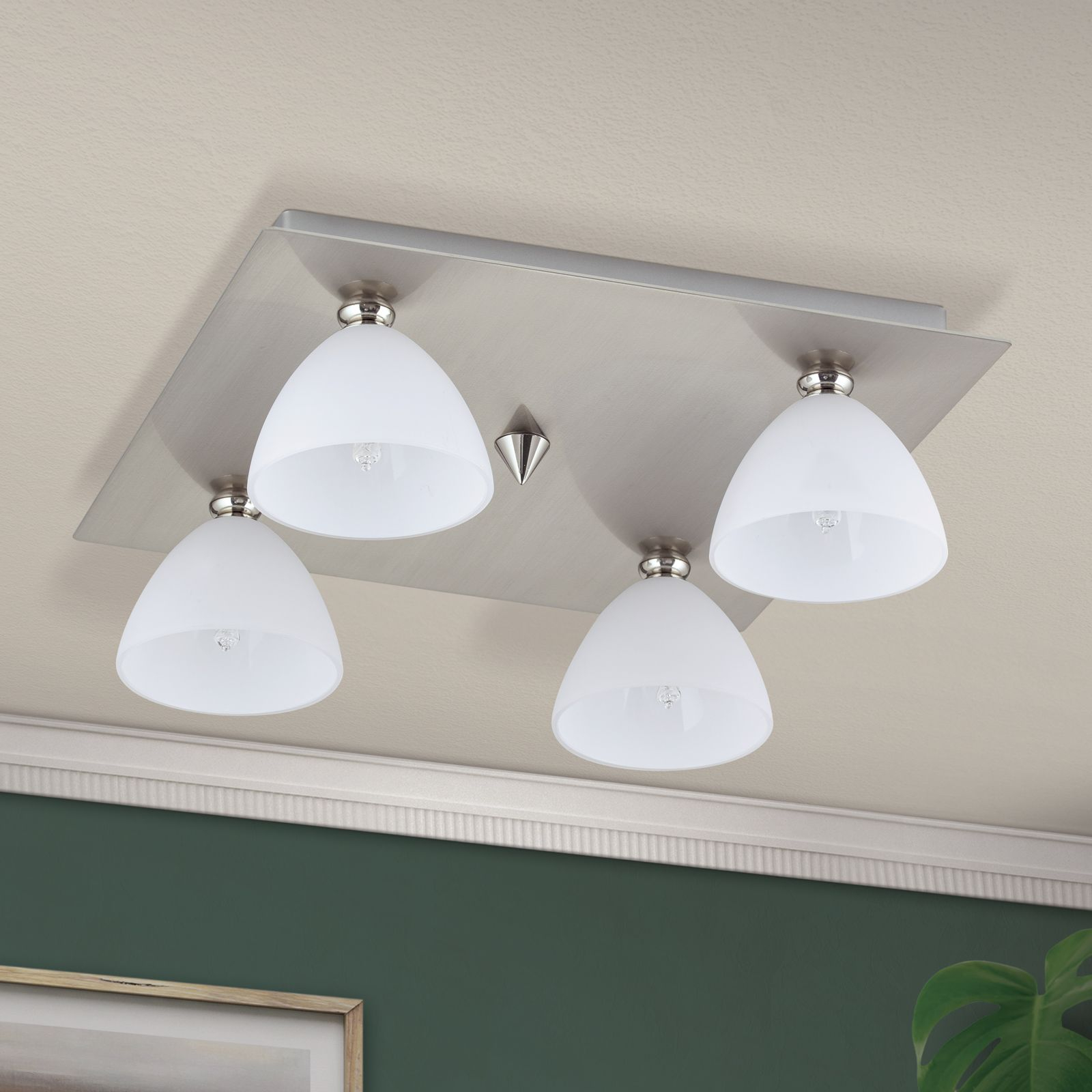 Осветителното тяло DL 7-372/4 satin/438 opal представлява плафон в съвременен стил. DL 7-372/4 satin/438 opal е от категорията осветителни тела и е подходящо за осветяване на различни помещения и пространства като: всекидневна / хол, спалня, кухня, трапезария, коридор, антре, стълбище, офис.
