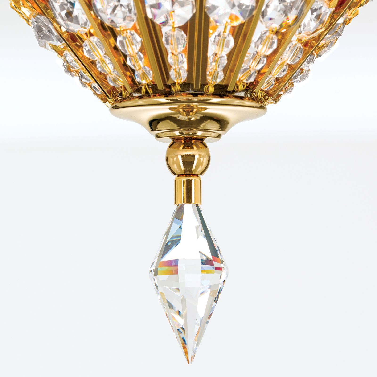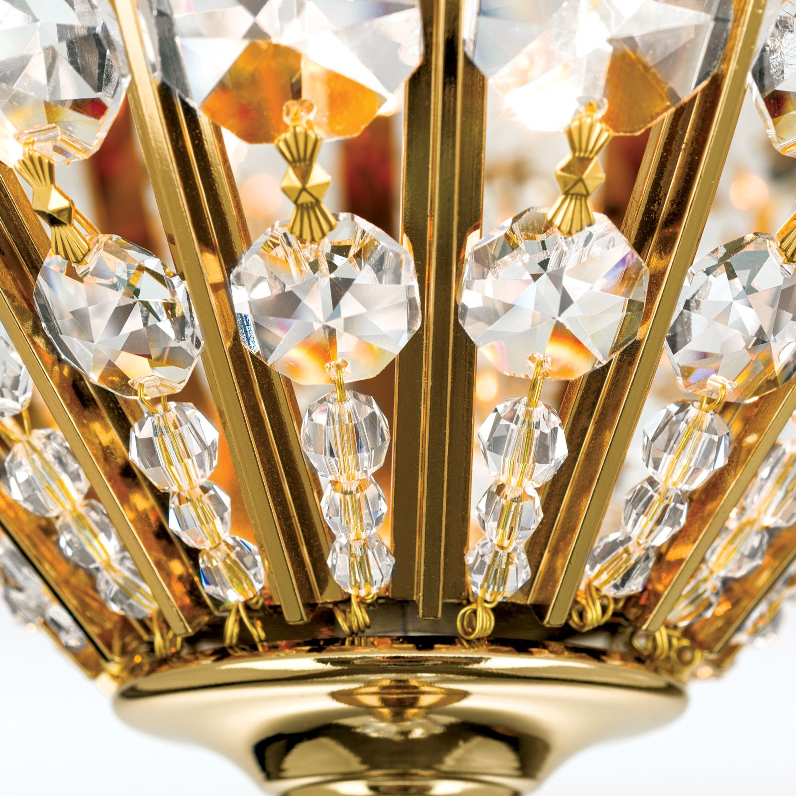 масивен месинг с 24 карата златно покритие, многобройни осмоъгълни кристали, кристални капки и кристални призми SCHÖLER CRYSTAL®