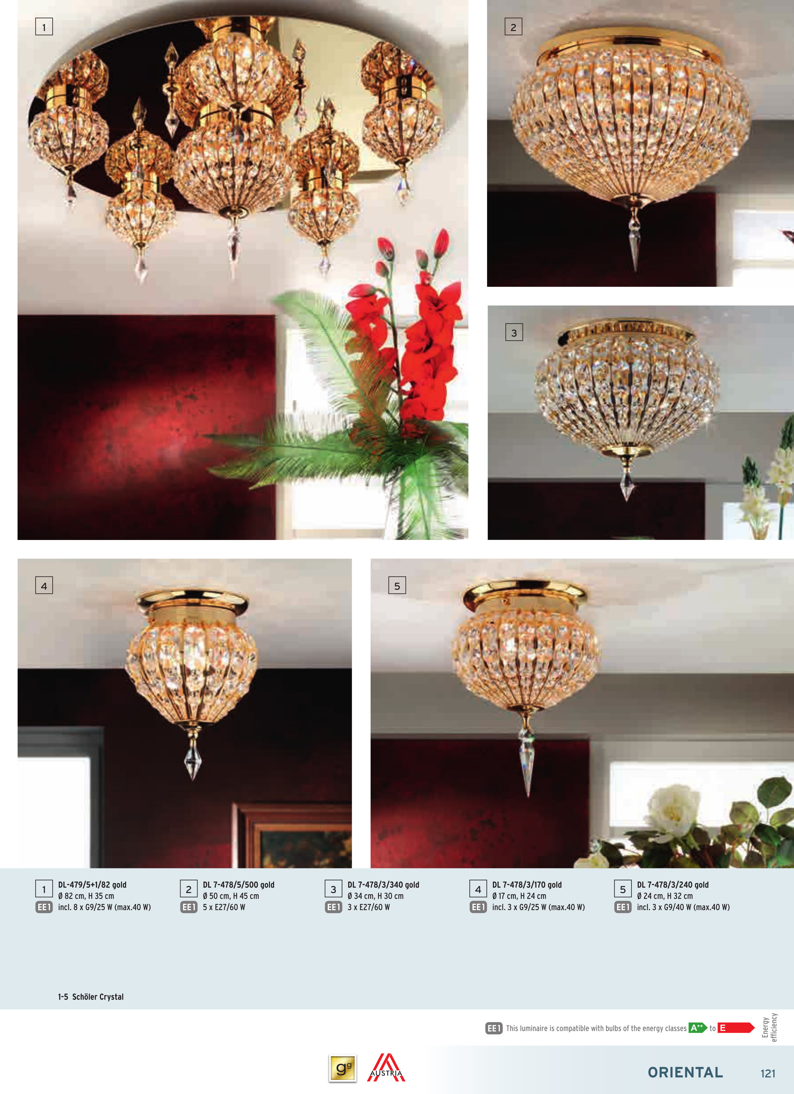 Осветителното тяло DL 7-478/3/170 gold (exkl. 3xG9/25W) ще осигури комфорт и естетика във всяко помещение, в което се постави. Цялостната визия и дизайн на лампата и вложените в изработката й материали, като масивен месинг с 24 карата златно покритие, многобройни осмоъгълни кристали, кристални капки и кристални призми SCHÖLER CRYSTAL®, ще допринесат за един неповторим стил. Благодарение на дългогодишния опит, качествените материали и строгия контрол на качеството на изработка на производителя Orion (Австрия), DL 7-478/3/170 gold (exkl. 3xG9/25W) е на високо европейско ниво.