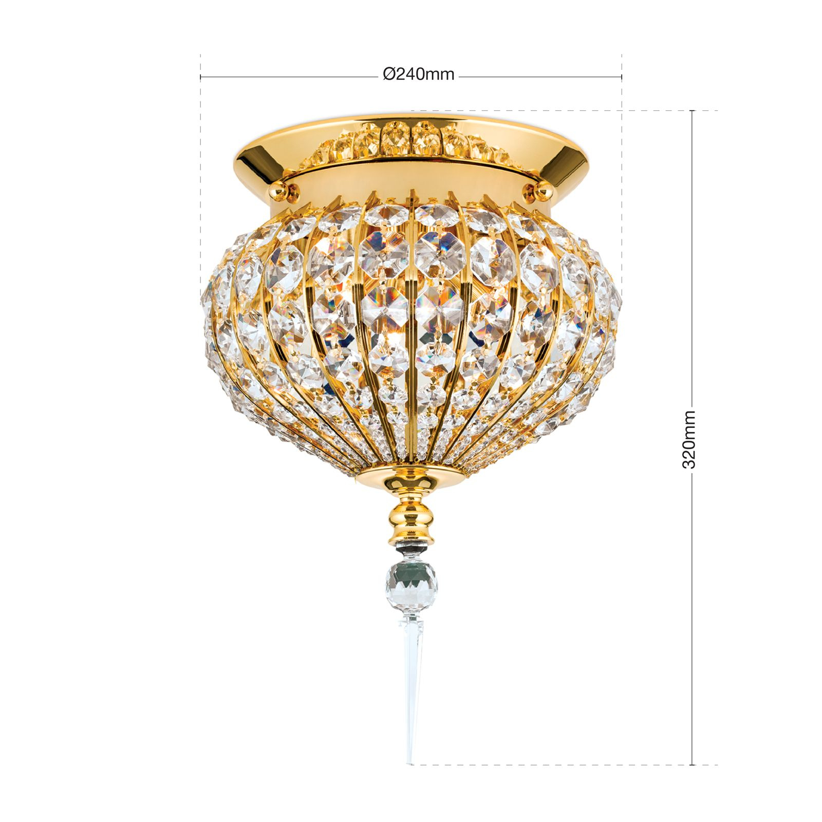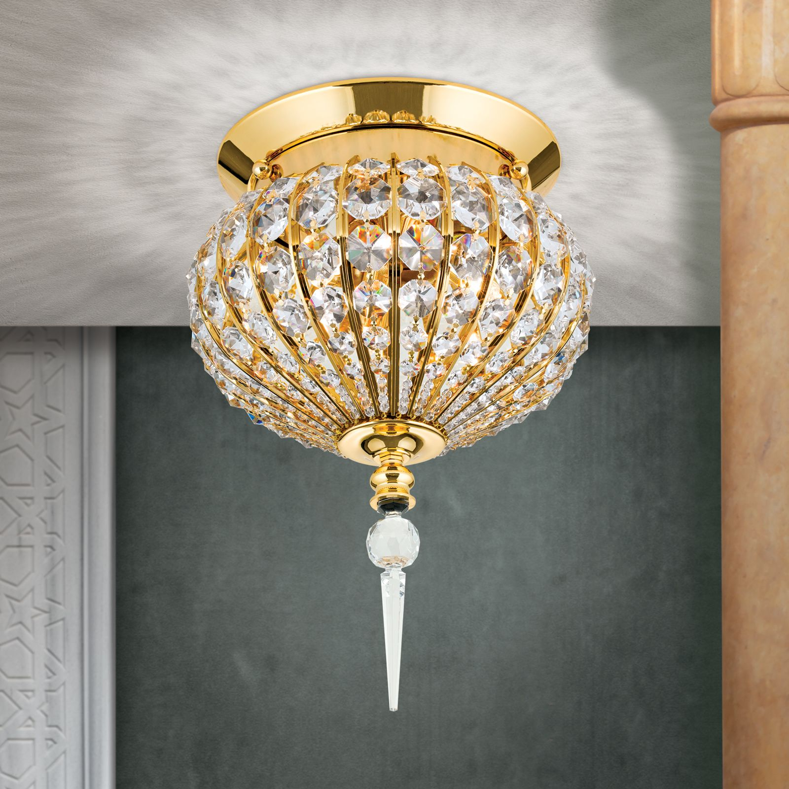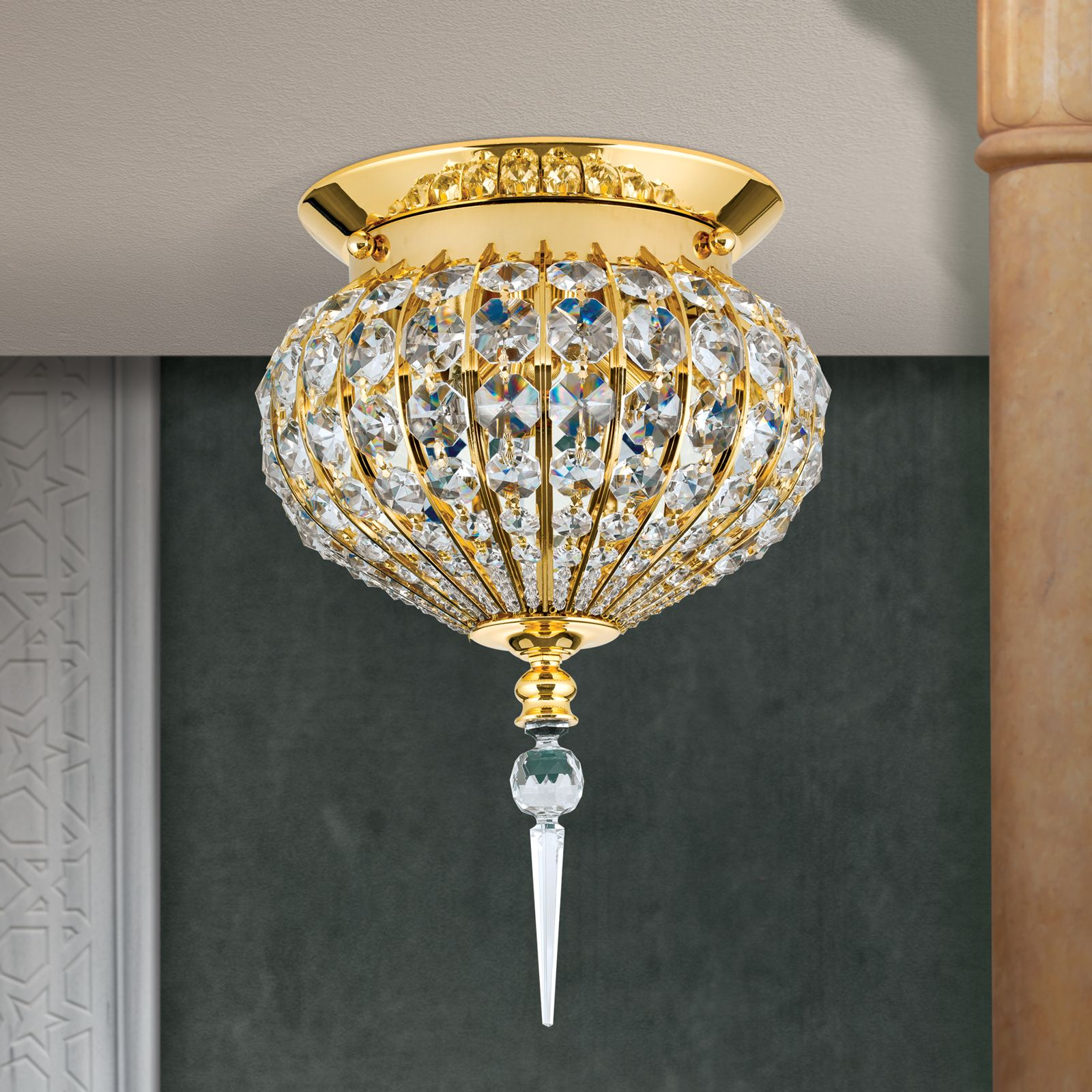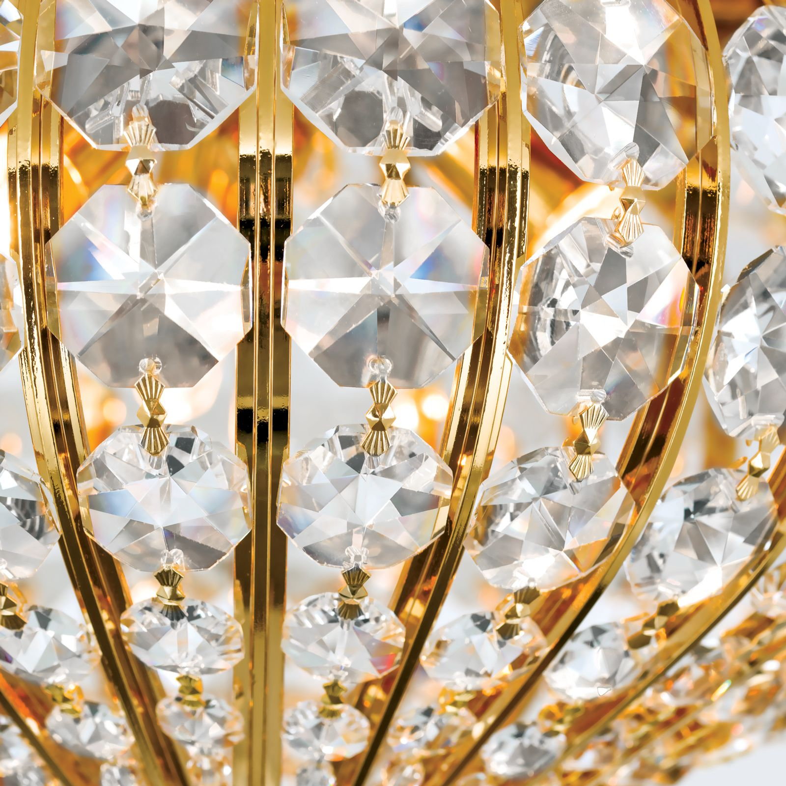 масивен месинг с 24 карата златно покритие, многобройни осмоъгълни кристали, кристални капки и кристални призми SCHÖLER CRYSTAL®
