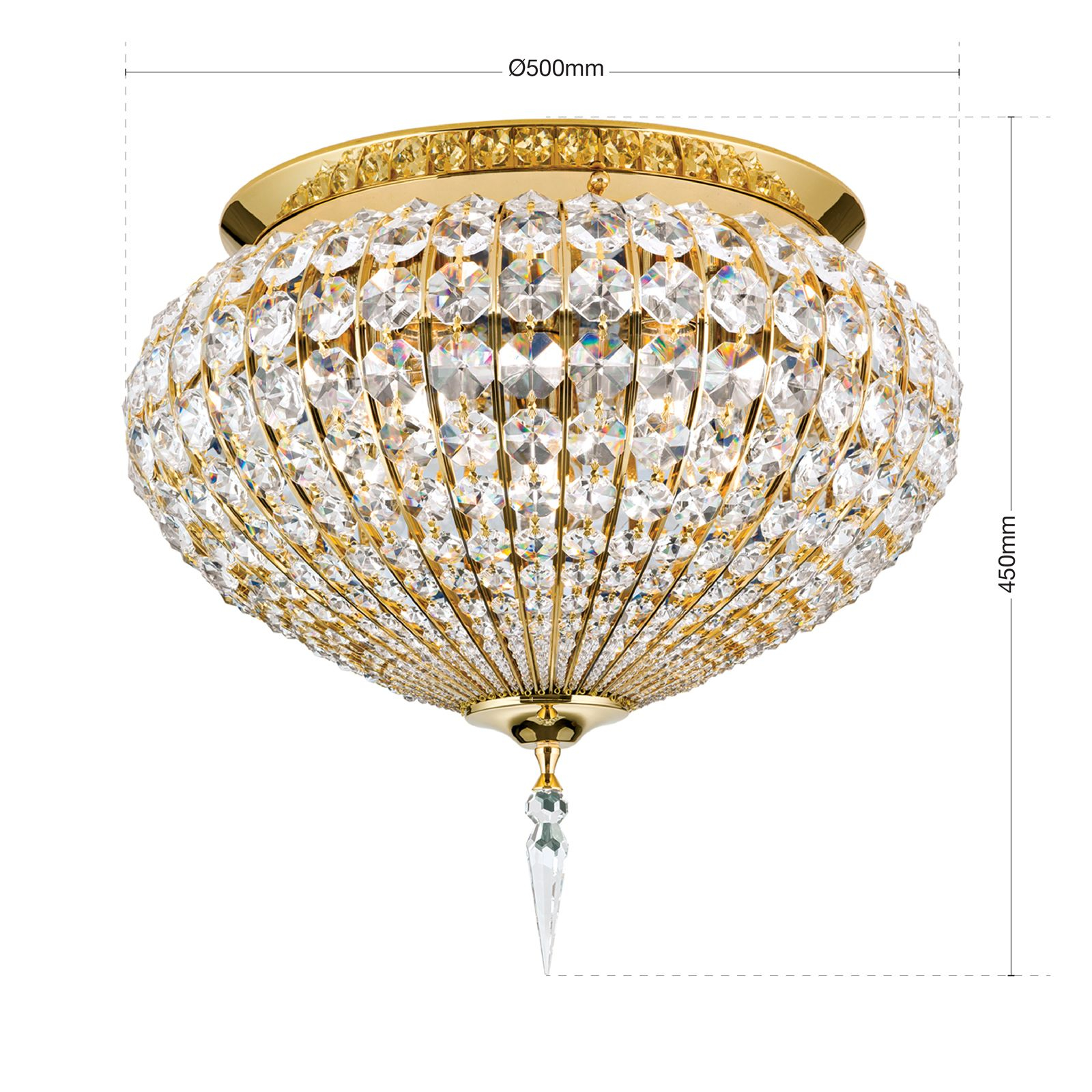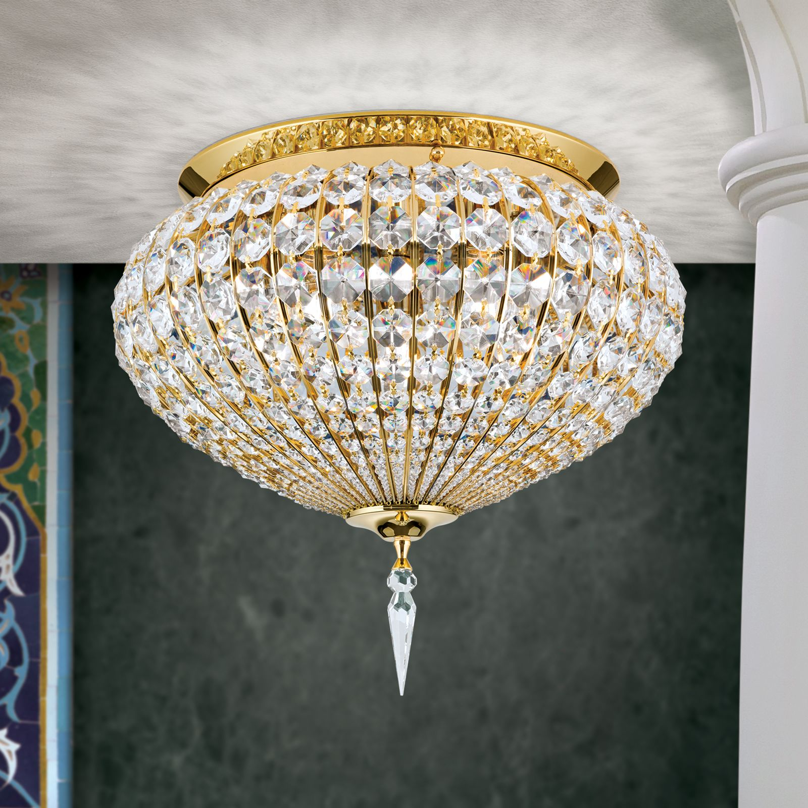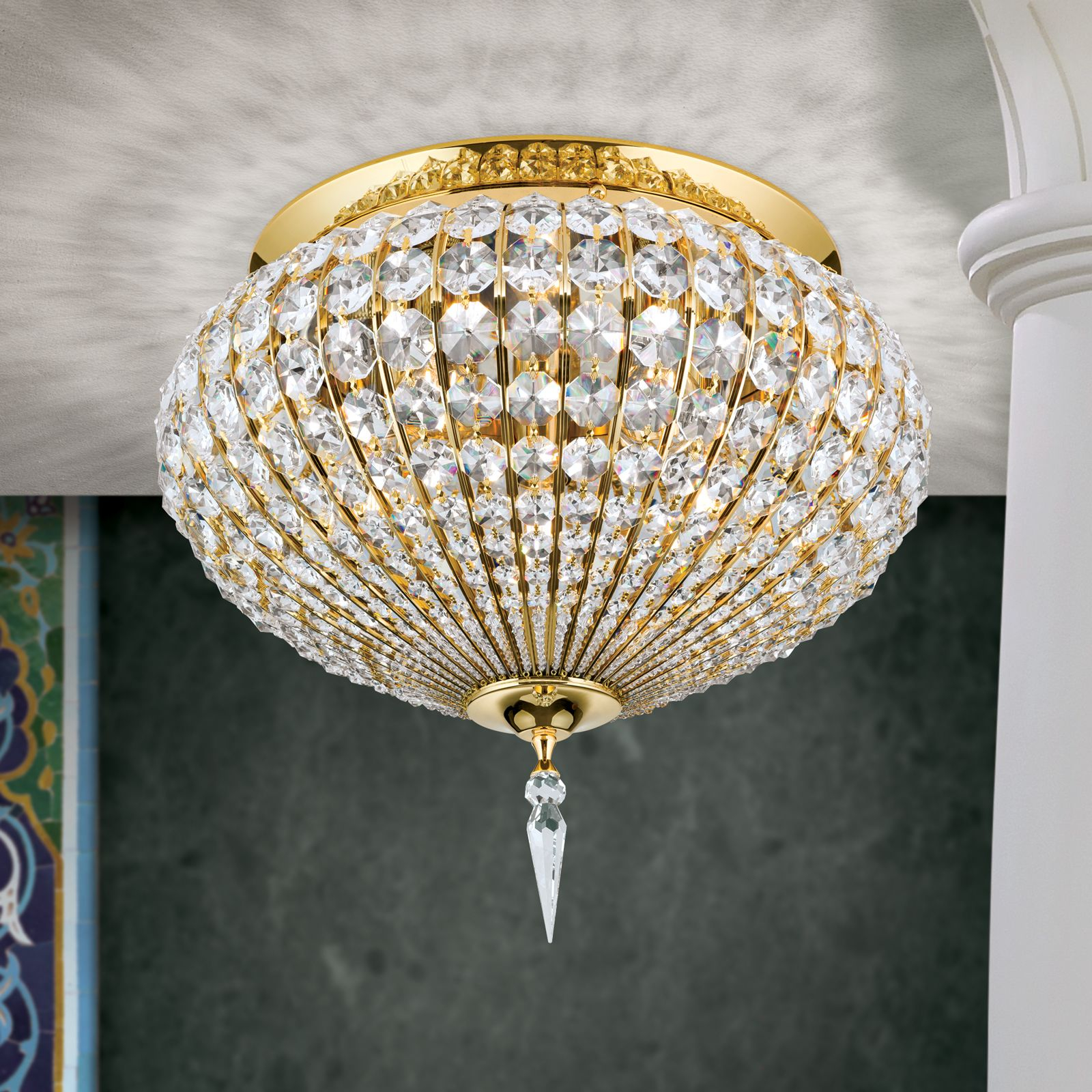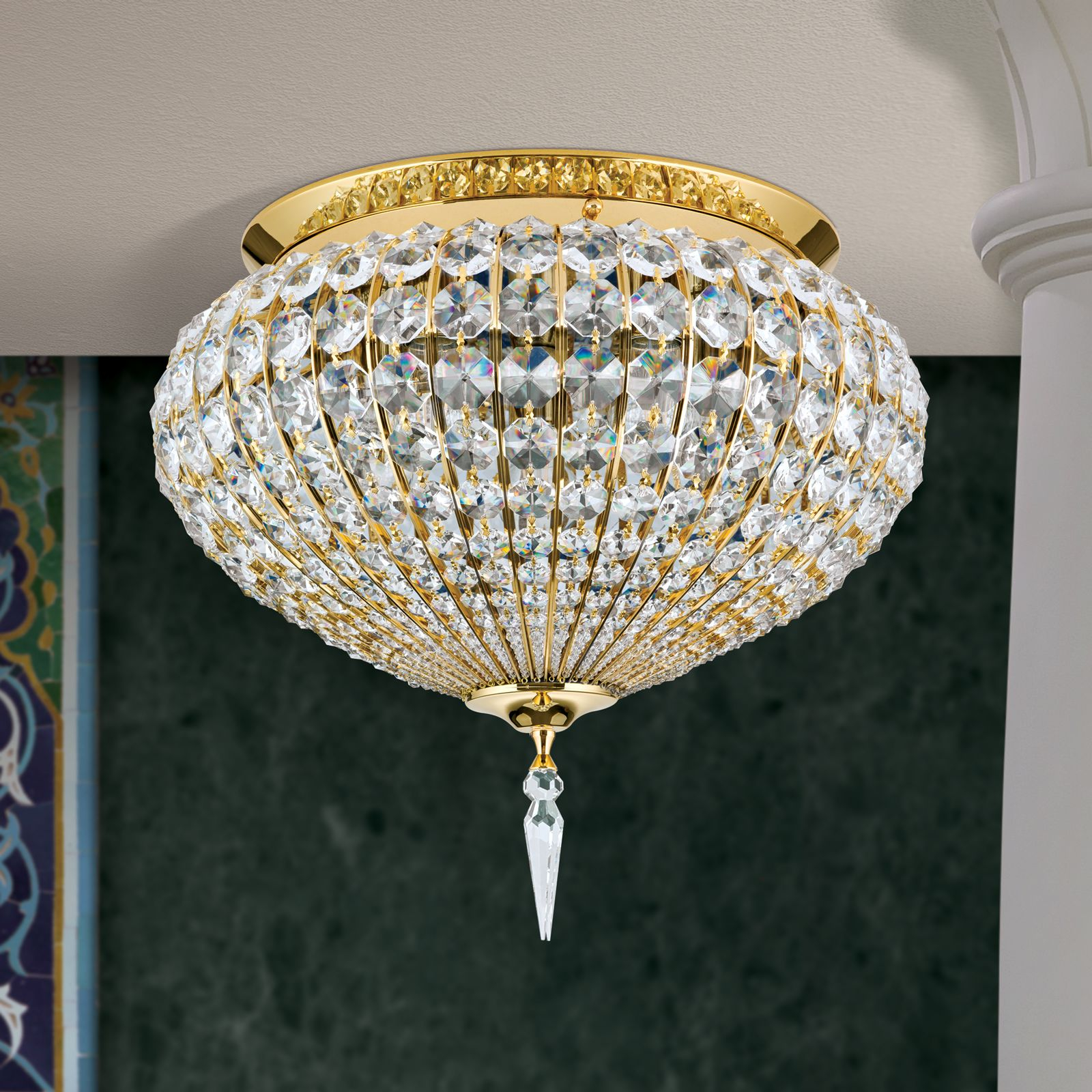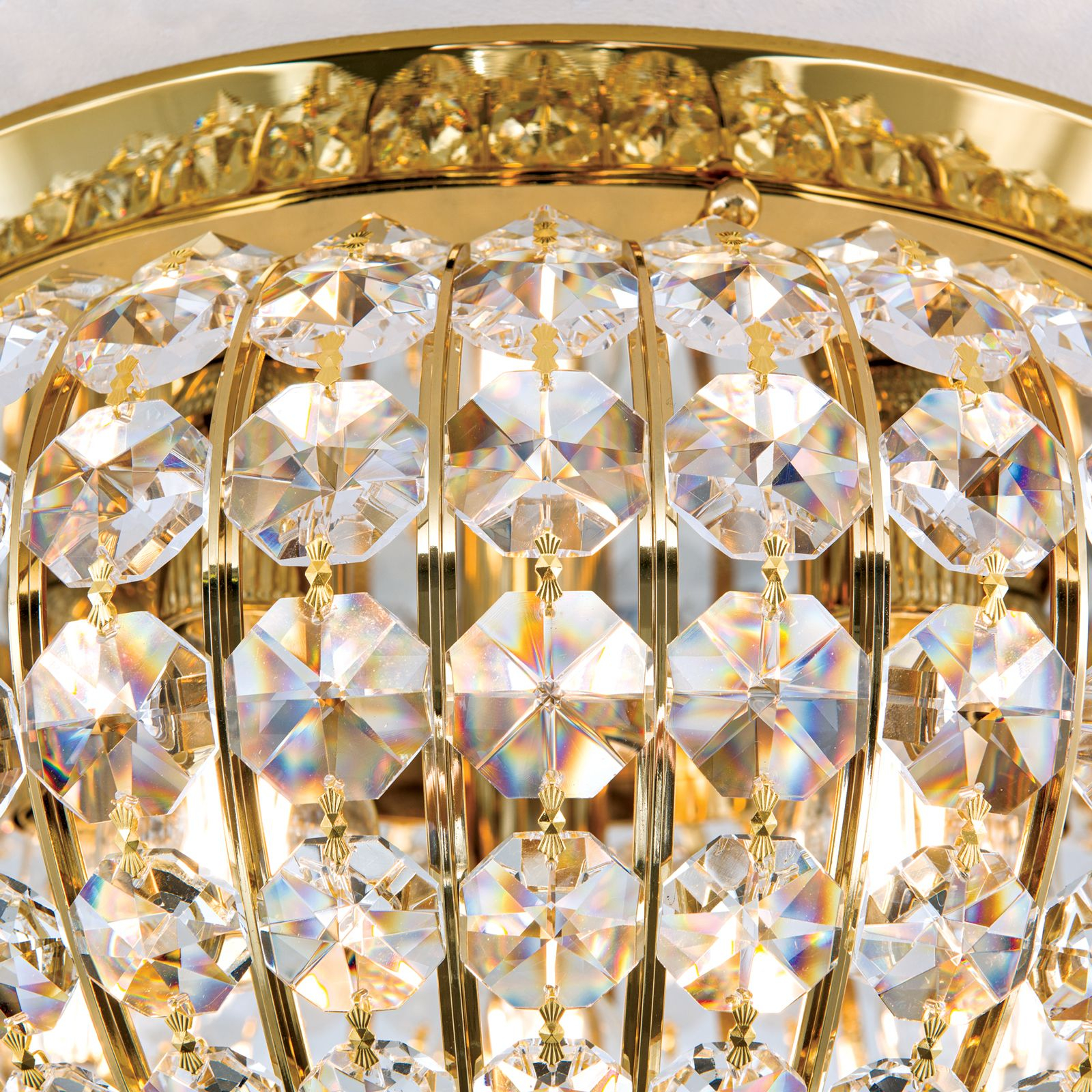 масивен месинг с 24 карата златно покритие, многобройни осмоъгълни кристали, кристални капки и кристални призми SCHÖLER CRYSTAL®