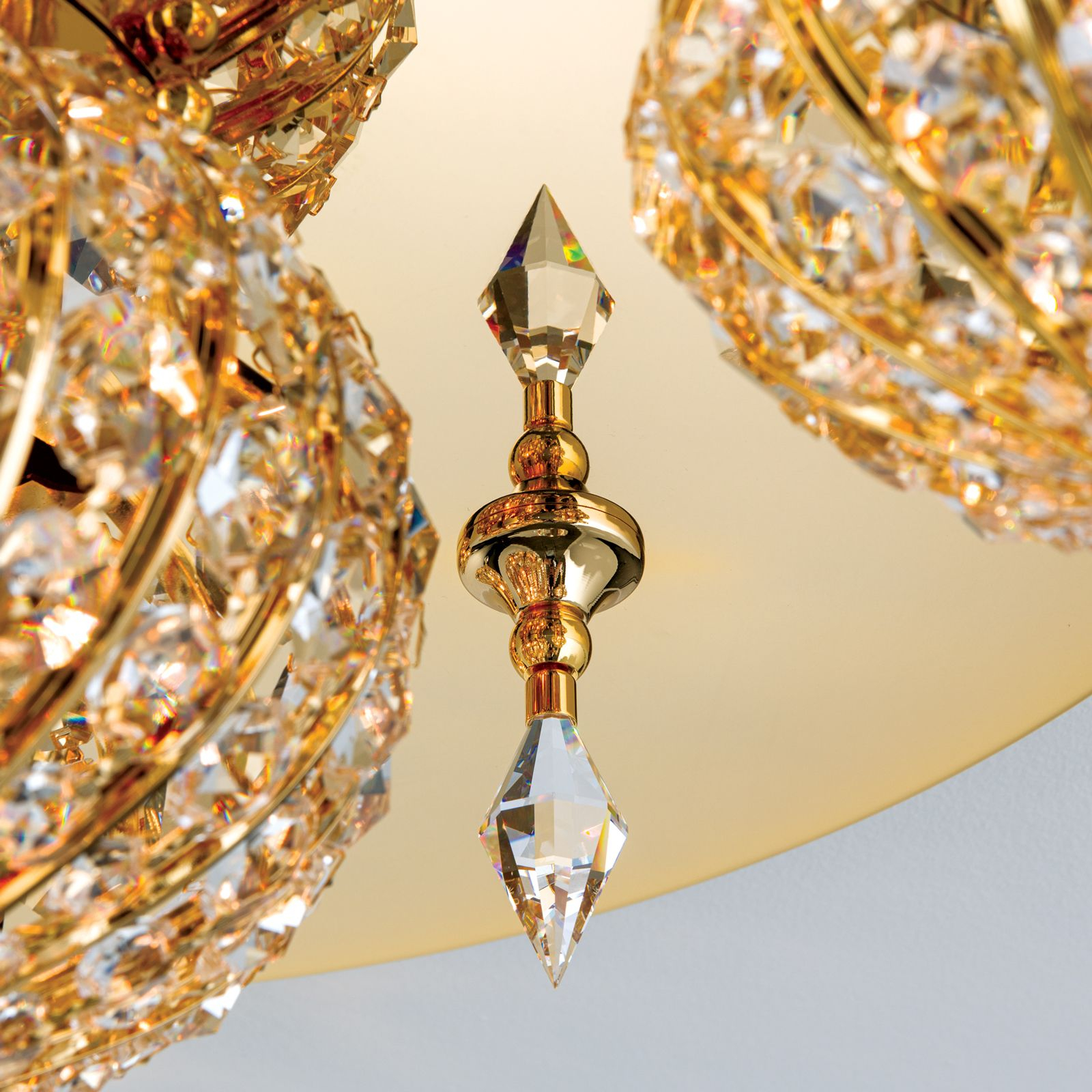 огледална плоча от масивен месинг с 24 карата златно покритие, многобройни осмоъгълни кристали, кристални капки и кристални сфери SCHÖLER CRYSTAL®