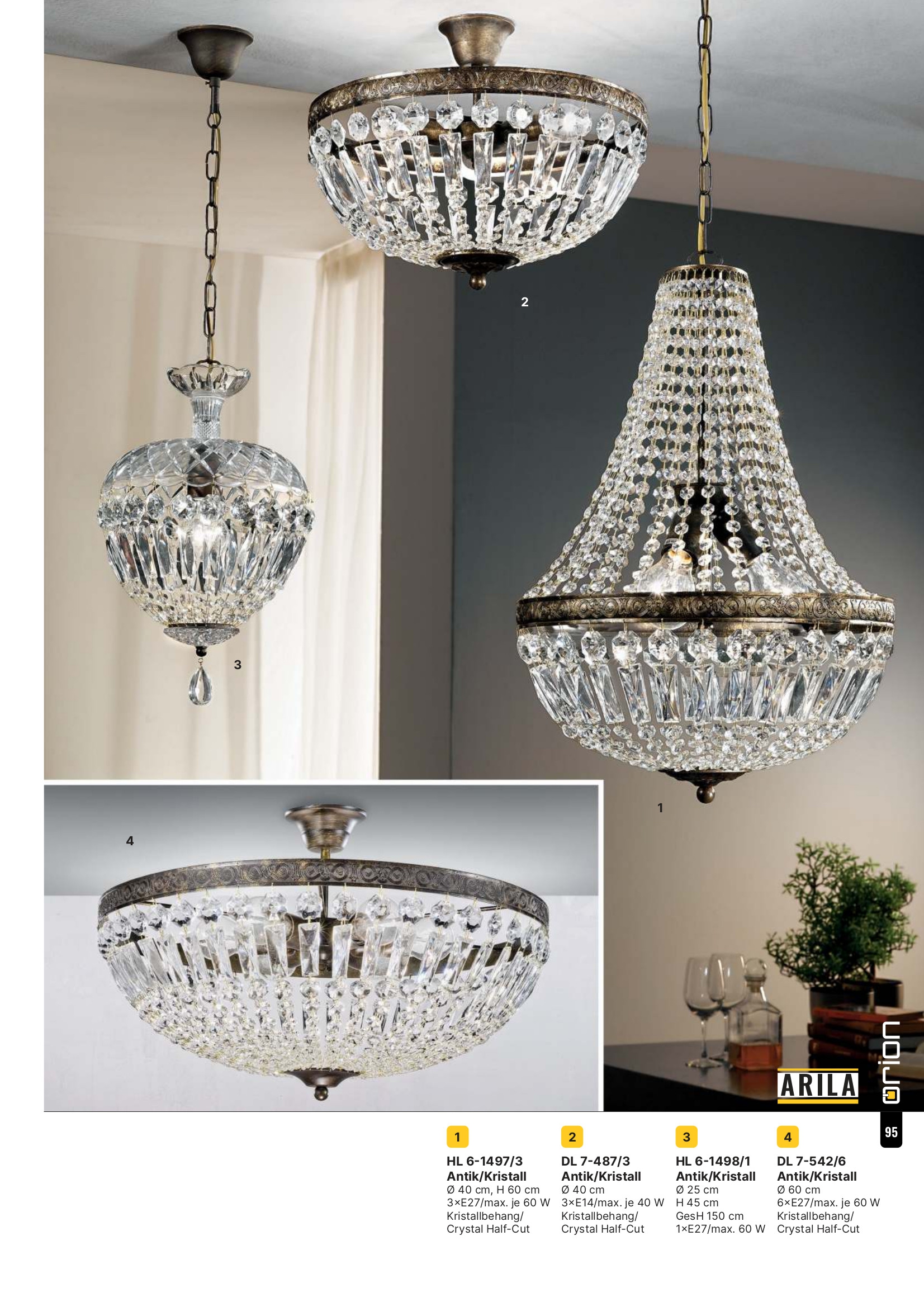 Осветителното тяло DL 7-487/3 Antik/Kristall (3xE14) ще осигури комфорт и естетика във всяко помещение, в което се постави. Цялостната визия и дизайн на лампата и вложените в изработката й материали, като метал в цвят старо злато, кристали, ще допринесат за един неповторим стил. Благодарение на дългогодишния опит, качествените материали и строгия контрол на качеството на изработка на производителя Orion (Австрия), DL 7-487/3 Antik/Kristall (3xE14) е на високо европейско ниво.