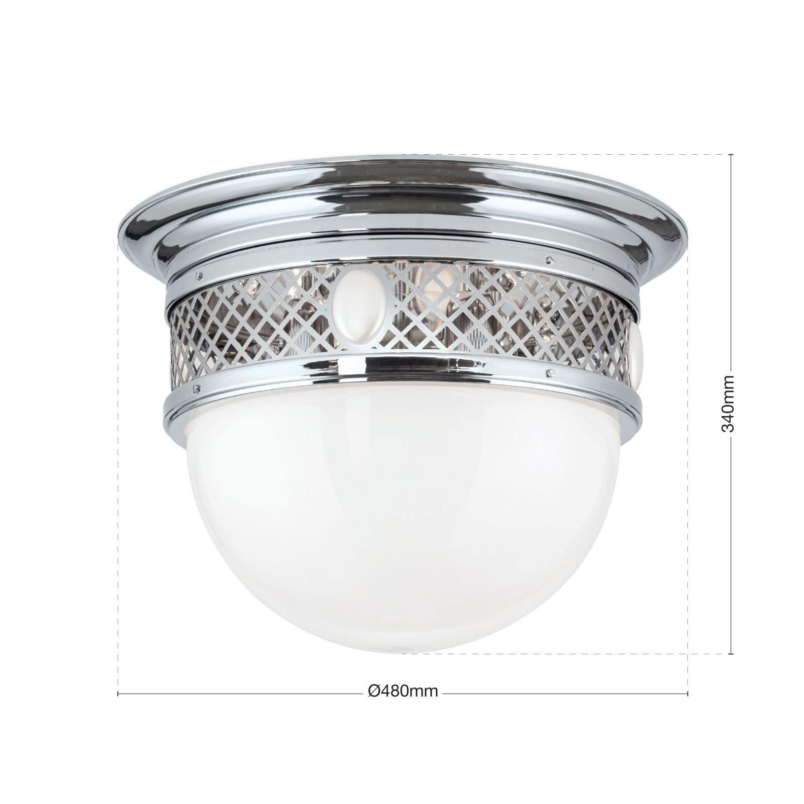 масивен месинг с покритие от блестящ никел, стъкло в цвят лъскав бял опал