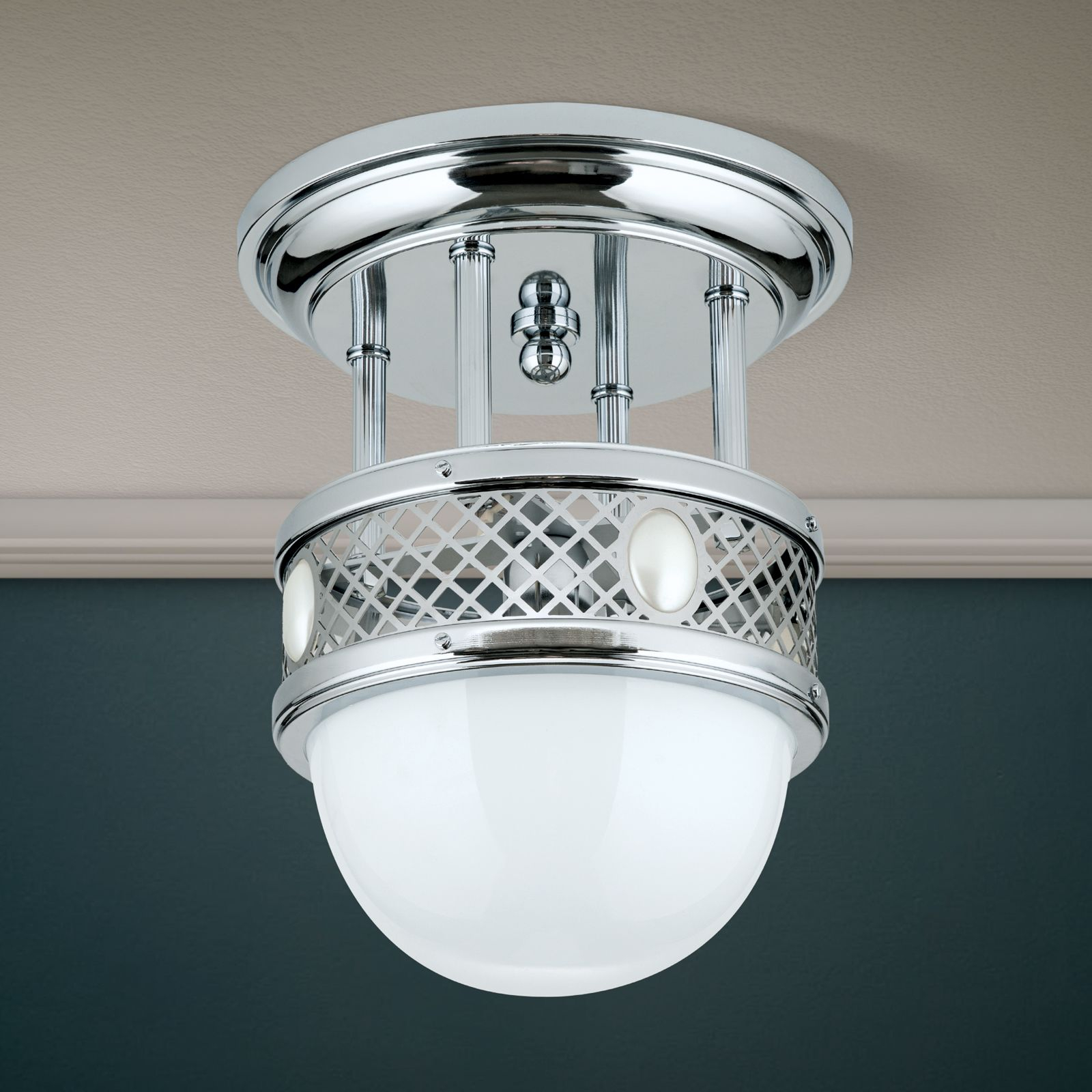 За стила и естетиката на интериора в изключително висока степен допринасят, както цялостната визия и дизайн на осветителното тяло, така и вложените в изработката висококачествени материали, като масивен месинг с покритие от блестящ никел, стъкло в цвят лъскав опал.