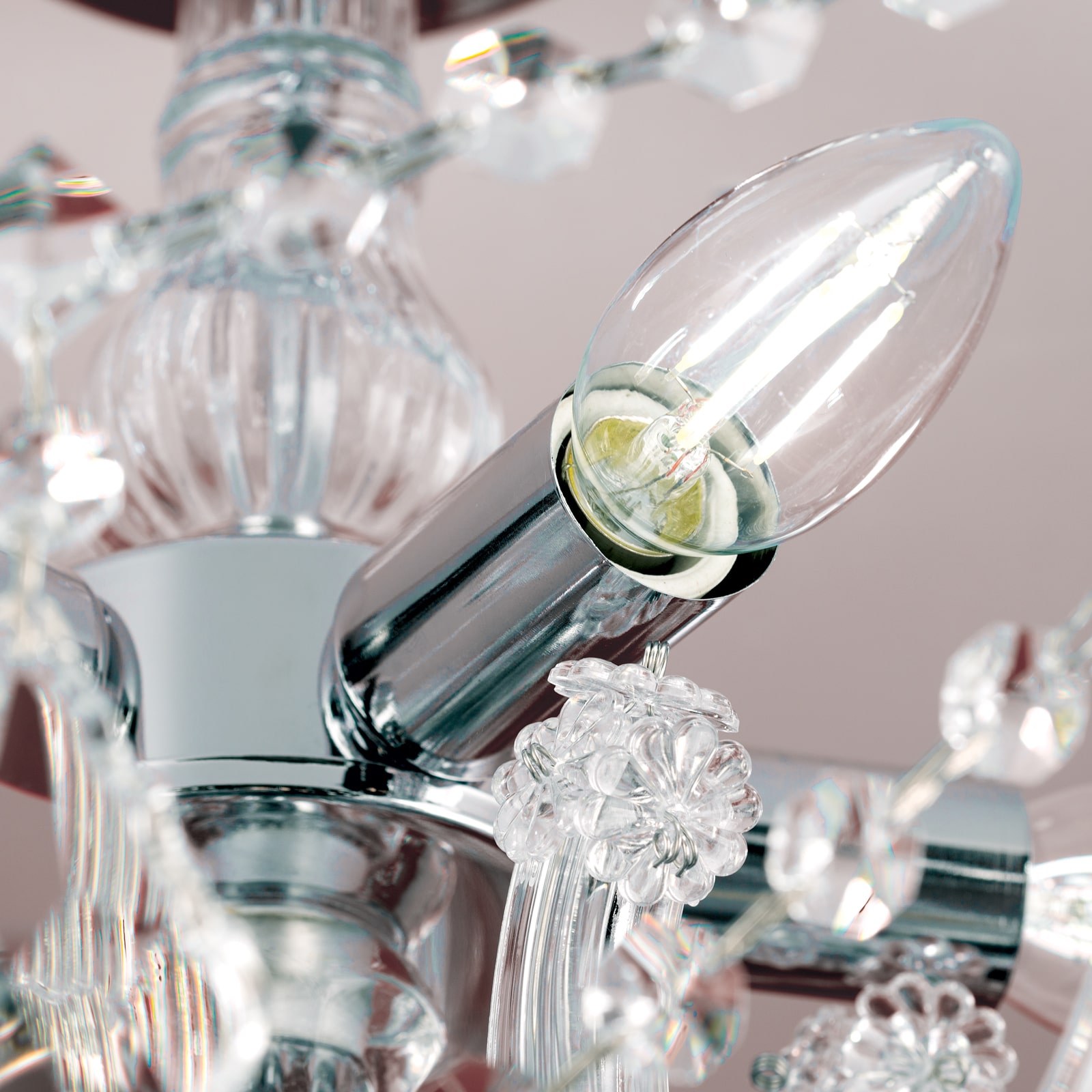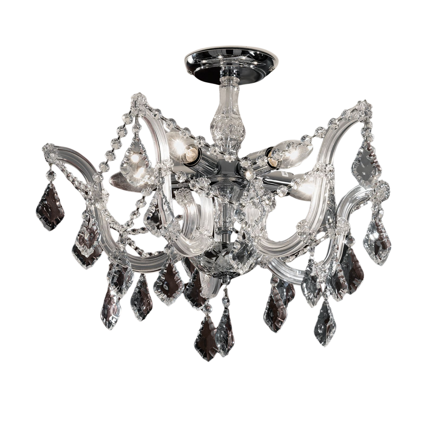 Осветителното тяло DL 7-595/5 MT-silber (5xE14) представлява плафон в класически стил. DL 7-595/5 MT-silber (5xE14) е от категорията осветителни тела и е подходящо за осветяване на различни помещения и пространства като: всекидневна / хол, спалня, кухня, трапезария, коридор, антре, стълбище, офис.