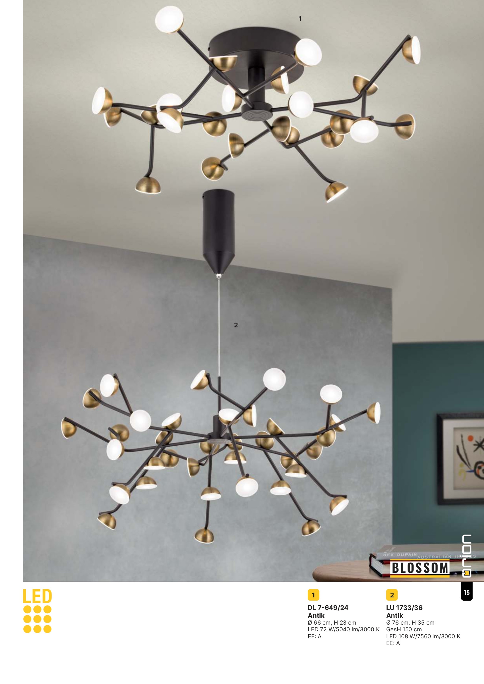 Осветителното тяло DL 7-649/24 Antik (LED 72W/3000K) ще осигури комфорт и естетика във всяко помещение, в което се постави. Цялостната визия и дизайн на лампата и вложените в изработката й материали, като стомана в черен цвят, стомана в цвят месинг антик, ще допринесат за един неповторим стил. Благодарение на дългогодишния опит, качествените материали и строгия контрол на качеството на изработка на производителя Orion (Австрия), DL 7-649/24 Antik (LED 72W/3000K) е на високо европейско ниво.