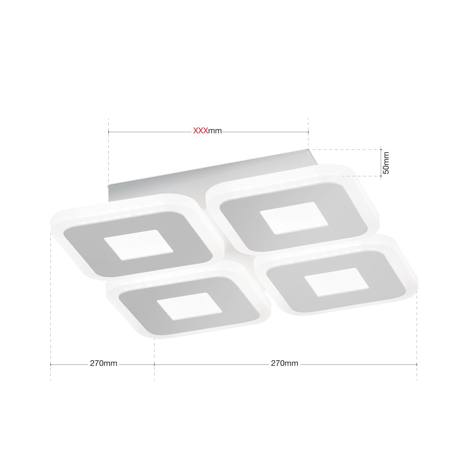 Осветителното тяло DL 7-655/4 wei? (LED38W/2300lm/3000K) представлява лед плафон в съвременен стил. DL 7-655/4 wei? (LED38W/2300lm/3000K) е от категорията и е подходящо за осветяване на различни помещения и пространства като: всекидневна / хол, спалня, кухня, трапезария, коридор, антре, стълбище, офис.