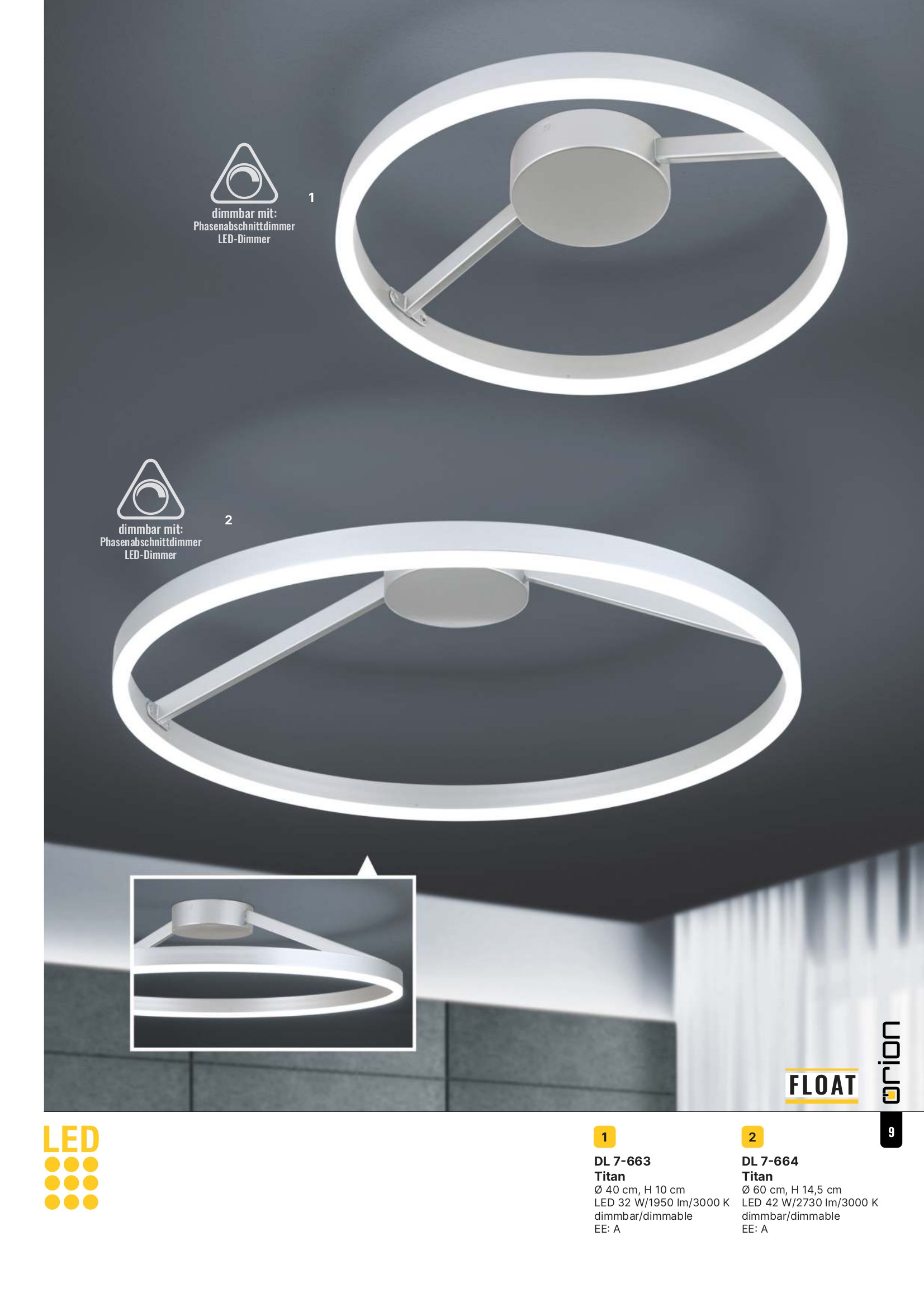 Осветителното тяло DL 7-664 Titan (LED42W/2730lm/3000K) ще осигури комфорт и естетика във всяко помещение, в което се постави. Цялостната визия и дизайн на лампата и вложените в изработката й материали, като стомана в цвят титан/сребристо мат, дифузер от полимер в бял цвят , ще допринесат за един неповторим стил. Благодарение на дългогодишния опит, качествените материали и строгия контрол на качеството на изработка на производителя Orion (Австрия), DL 7-664 Titan (LED42W/2730lm/3000K) е на високо европейско ниво.
