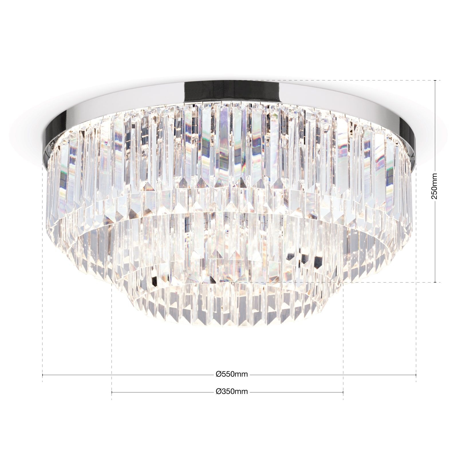 Лед плафон DL 7-666/55 chrom (LED80W/6400lm/3000K) ще осигури комфорт и естетика във всяко помещение, в което се постави. Цялостната визия и дизайн на led лампата и вложените в изработката й материали, като хромирана стомана, кристални призми К9, ще допринесат за един неповторим стил. Благодарение на дългогодишния опит в производството на лед осветление, качествените материали и строгия контрол на качеството на изработка на производителя Orion (Австрия), DL 7-666/55 chrom (LED80W/6400lm/3000K) е на високо европейско ниво.