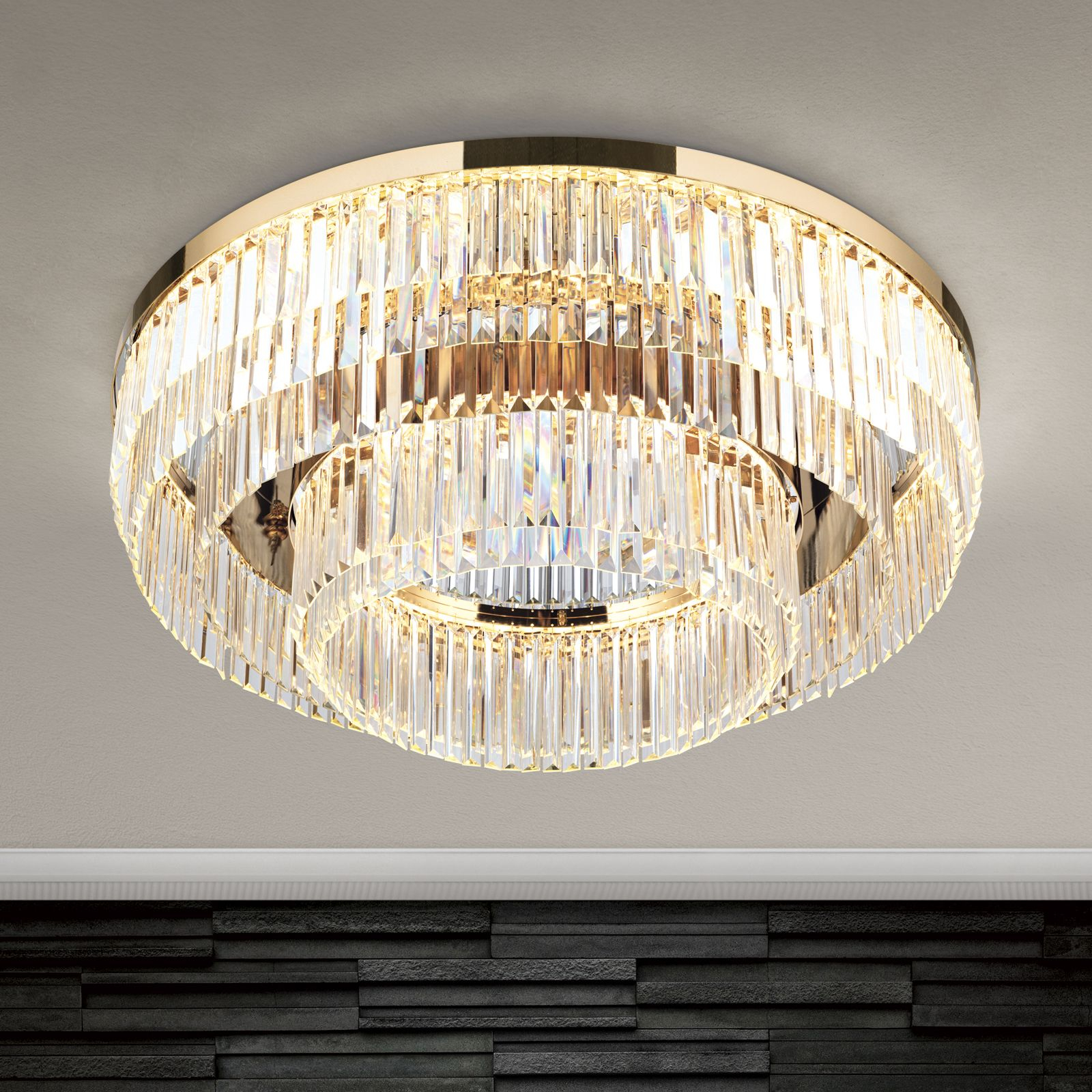 стомана с покритие от 24 карата злато, кристални призми ORION, димируемо осветително тяло
