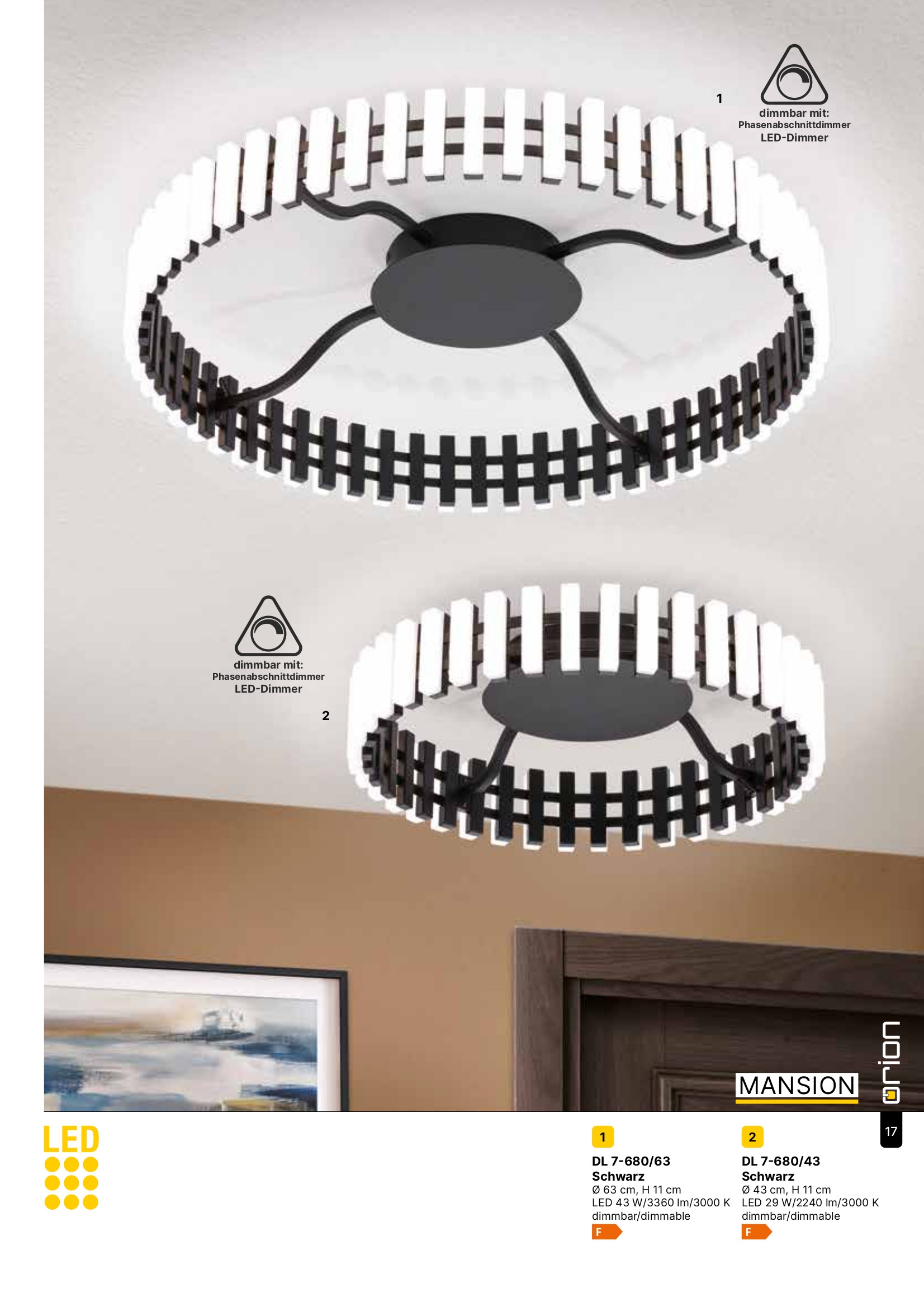 Осветителното тяло изпълнено в съвременен стил DL 7-680/63 schwarz (LED43W/3360lm/3000K е един чудесен пример за постигнат изискан баланс между добра осветеност и елегантна визия във Вашето осветление за спалня.