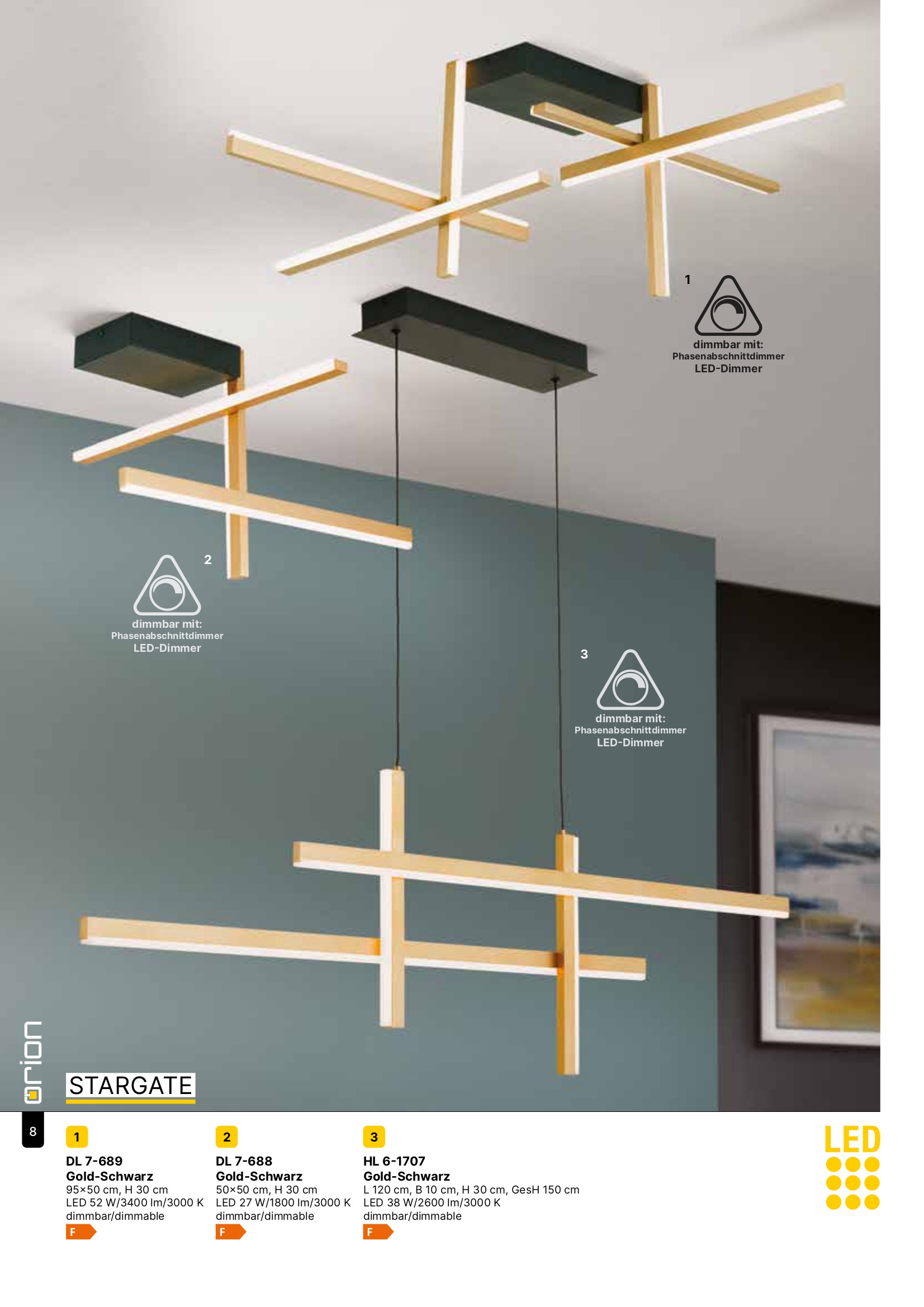 Осветителното тяло DL 7-688 gold-schwarz (LED25W/3000K) ще осигури комфорт и естетика във всяко помещение, в което се постави. Цялостната визия и дизайн на лампата и вложените в изработката й материали, като алуминий със златно покритие, база от алуминий в черен цвят, силикон в опалово матово бяло покритие, ще допринесат за един неповторим стил. Благодарение на дългогодишния опит, качествените материали и строгия контрол на качеството на изработка на производителя Orion (Австрия), DL 7-688 gold-schwarz (LED25W/3000K) е на високо европейско ниво.