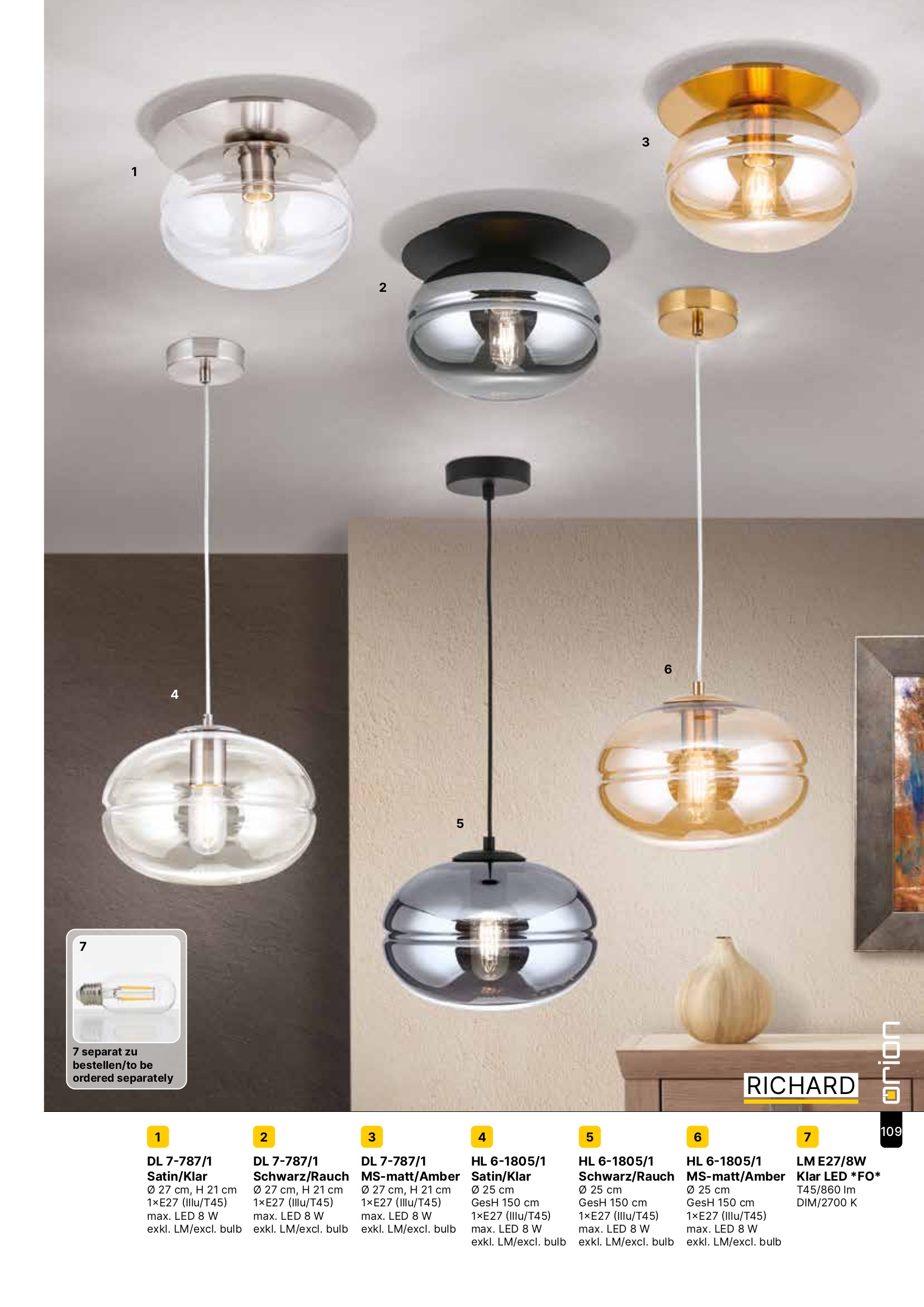 пендел HL 6-1805/1 MS-matt/amber (fIlluE27/T45)