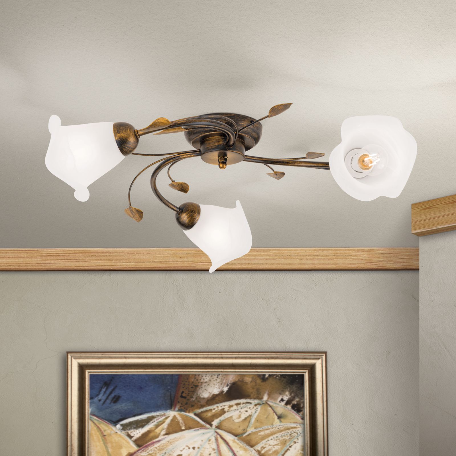 Осветителното тяло DL 7-788/3 Antik (3xE14) представлява плафон в флорален стил. DL 7-788/3 Antik (3xE14) е от категорията осветителни тела и е подходящо за осветяване на различни помещения и пространства като: всекидневна / хол, спалня, кухня, трапезария, коридор, антре, стълбище, офис.