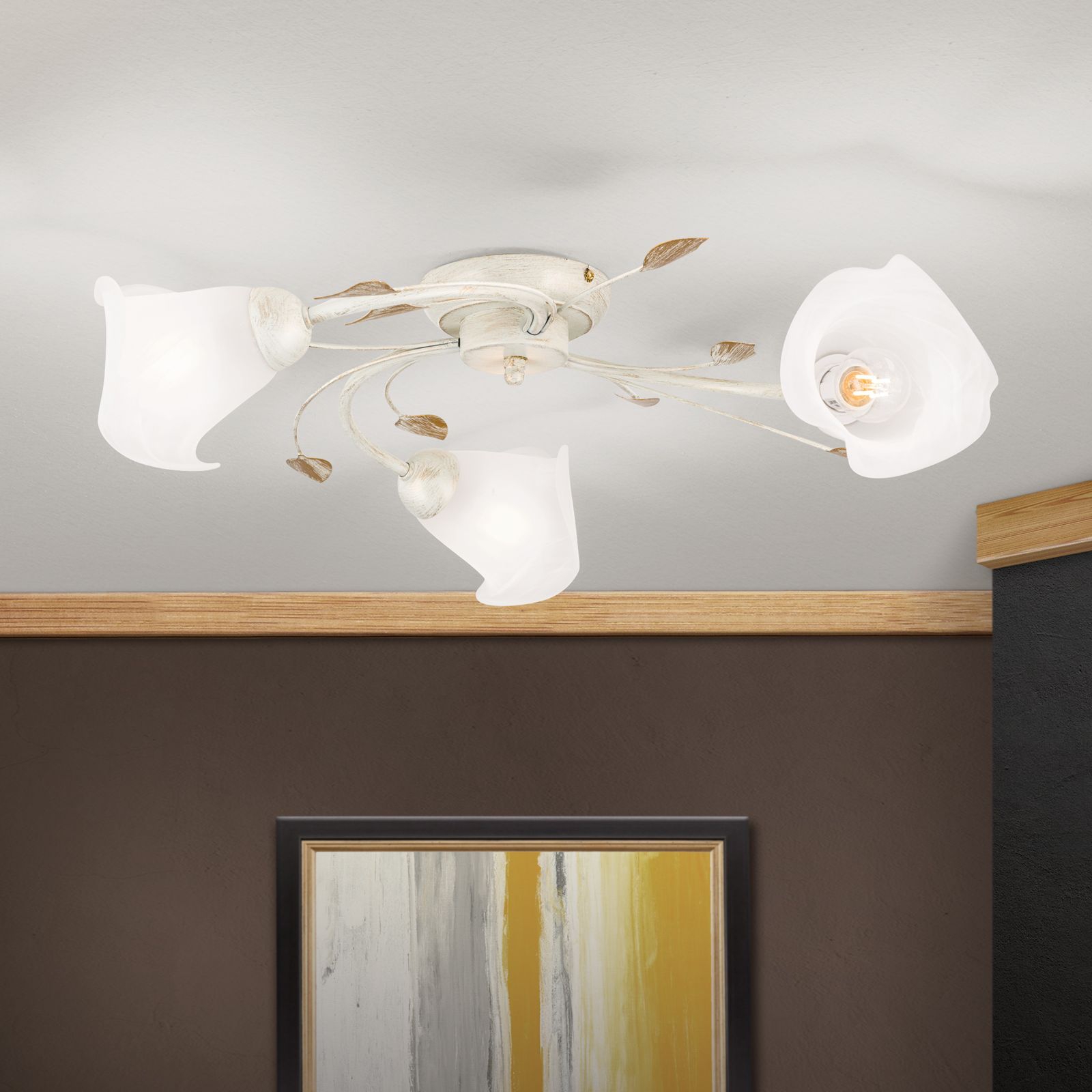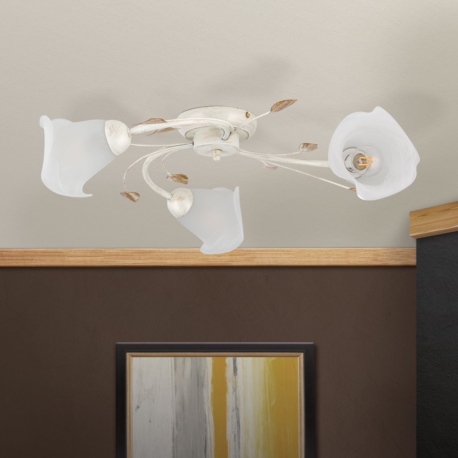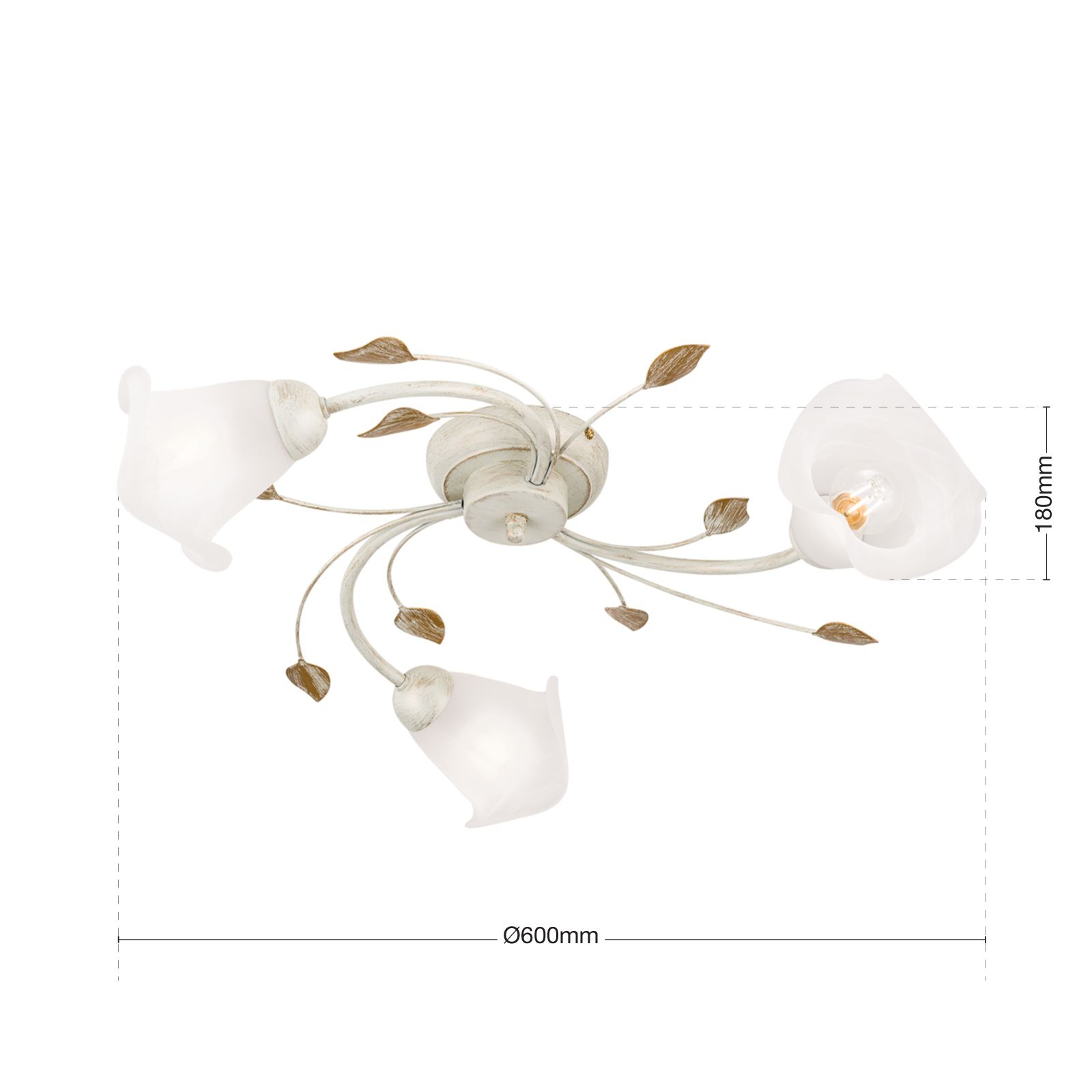 Представяме Ви осветителното тяло DL 7-788/3 Elfenbein-gold (3xE14), което представлява плафон в флорален стил. Като представител на категорията плафони то е подходящо за осветятване на различни помещения и пространства, като например всекидневна / хол, спалня, кухня, трапезария, коридор, антре, стълбище, офис.