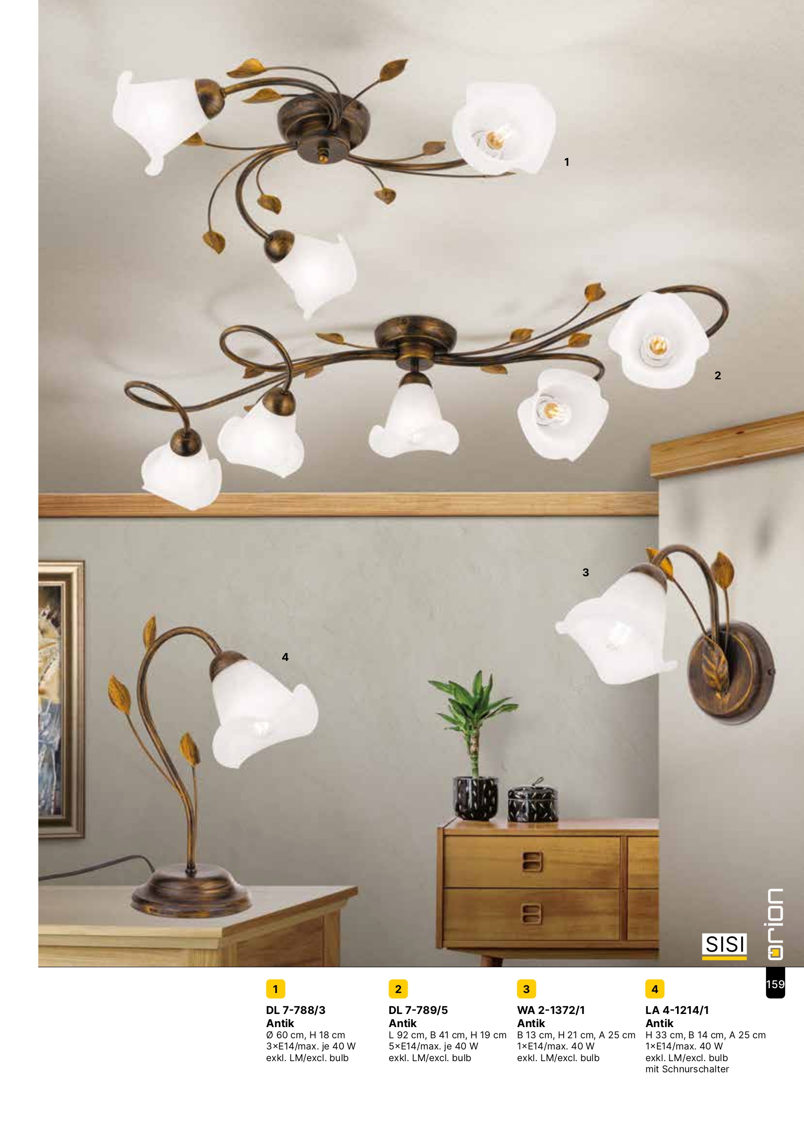 Осветителното тяло DL 7-789/5 Antik (5xE14) представлява плафон в класически стил. DL 7-789/5 Antik (5xE14) е от категорията осветителни тела и е подходящо за осветяване на различни помещения и пространства като: всекидневна / хол, спалня, кухня, трапезария, офис.