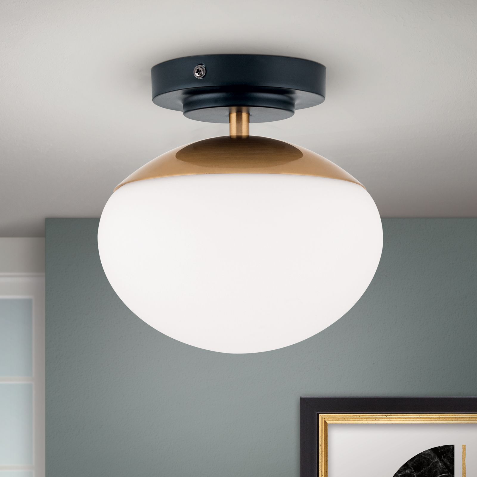 За стила и естетиката на интериора в изключително висока степен допринасят, както цялостната визия и дизайн на осветителното тяло, така и вложените в изработката висококачествени материали, като стомана в черно и златно, матово бяло стъкло.