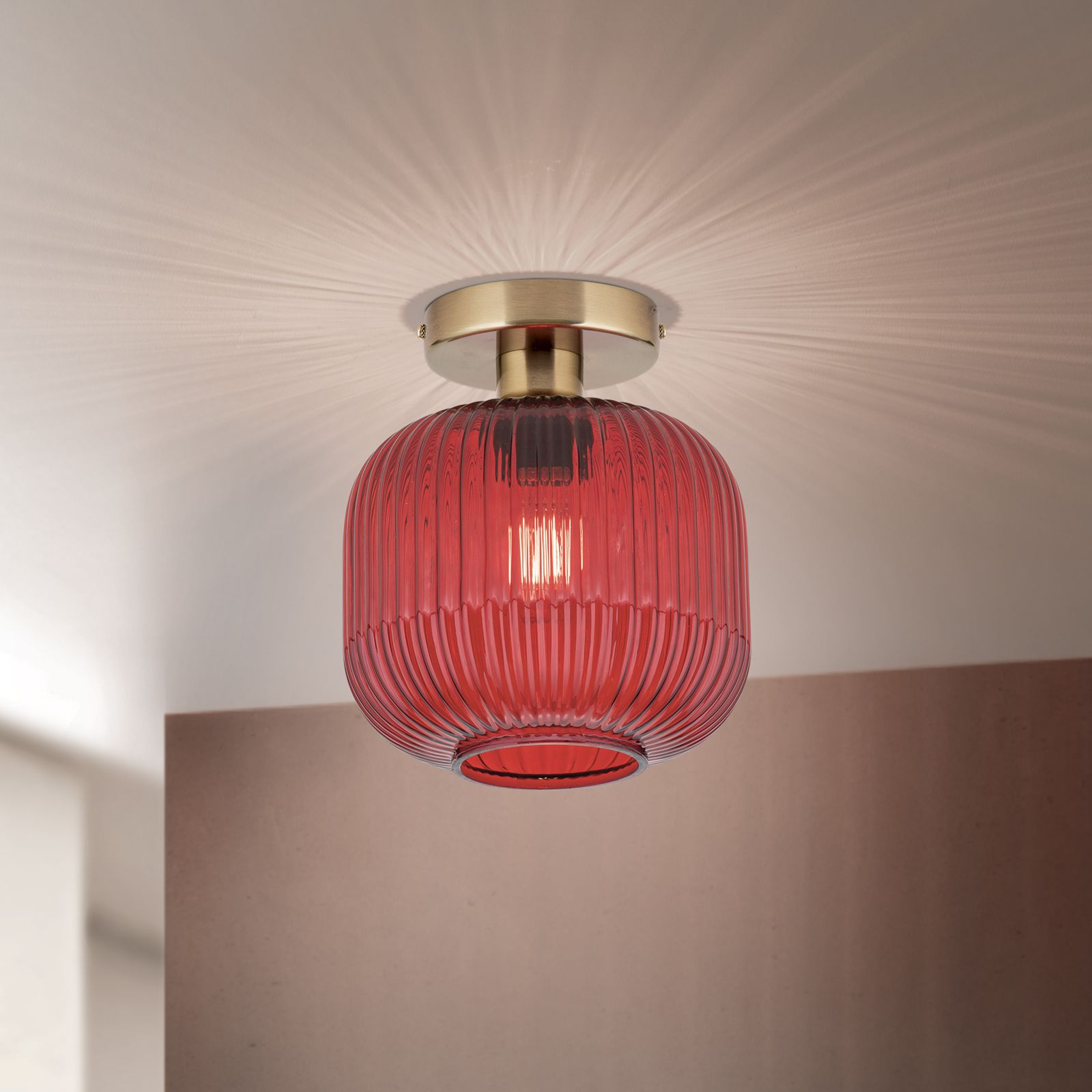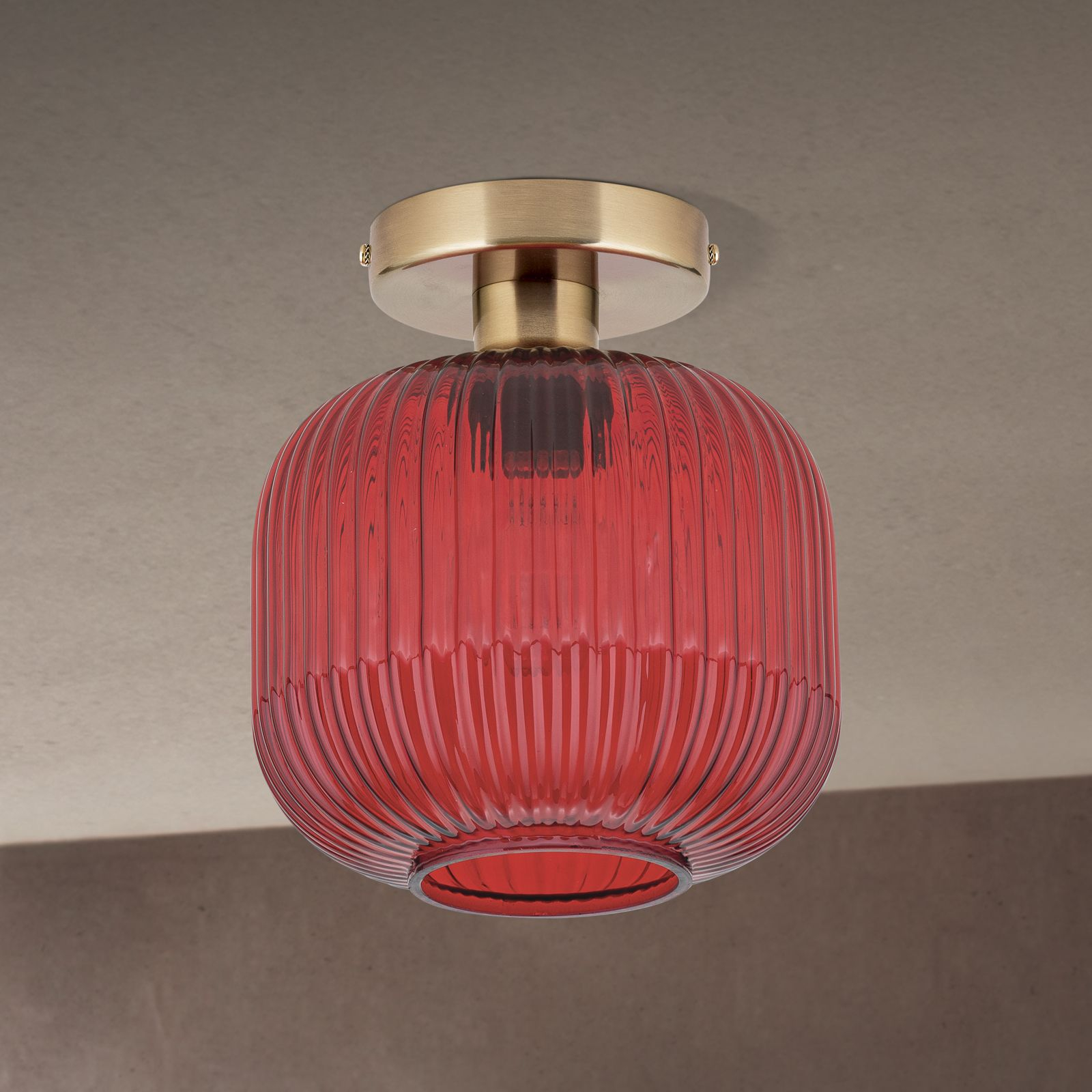 метал в цвят античен месинг, стъкло в червен цвят