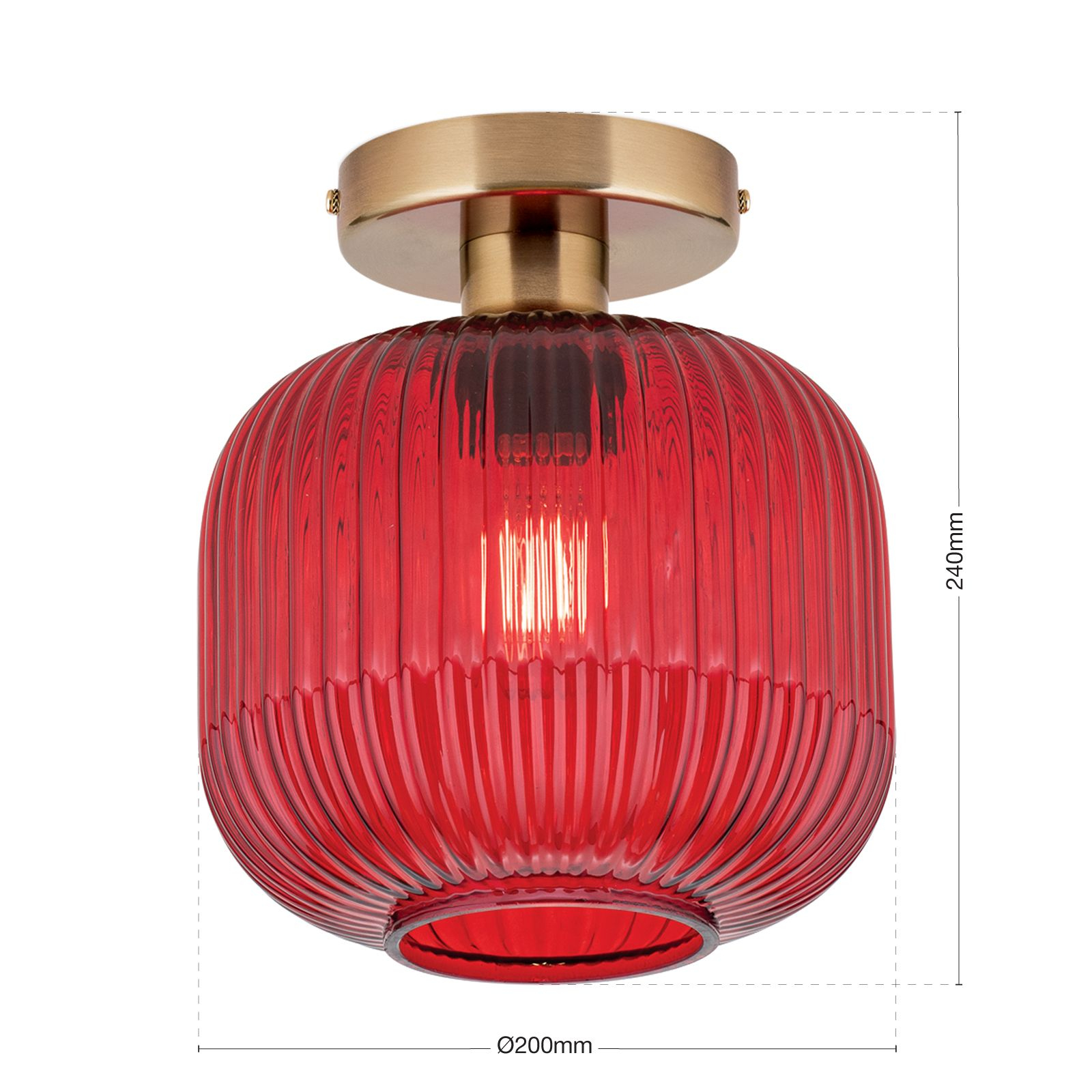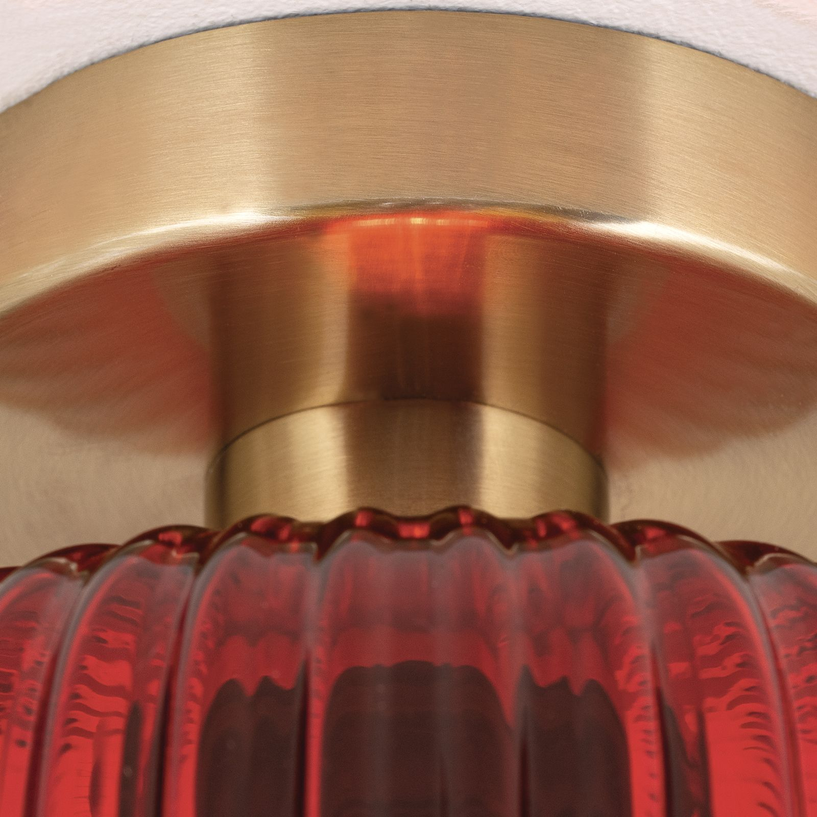 За стила и естетиката на интериора в изключително висока степен допринасят, както цялостната визия и дизайн на осветителното тяло, така и вложените в изработката висококачествени материали, като метал в цвят античен месинг, стъкло в червен цвят.