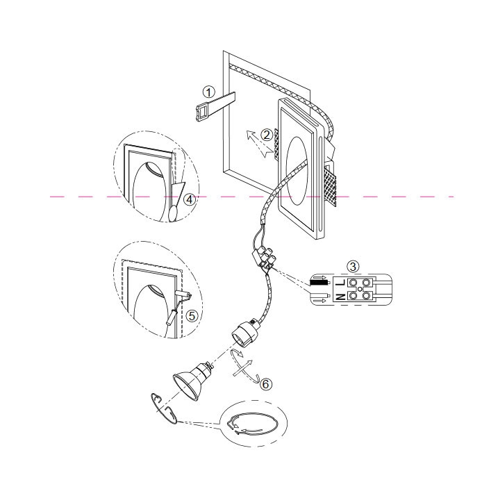 Този вид фасунга се използва главно в осветителни тела тип "спот" или "луничка" с халогенни светлоизточници (подходяща е също и за енергоспестяващи и светодиодни (LED)). Работното напрежение е 220V