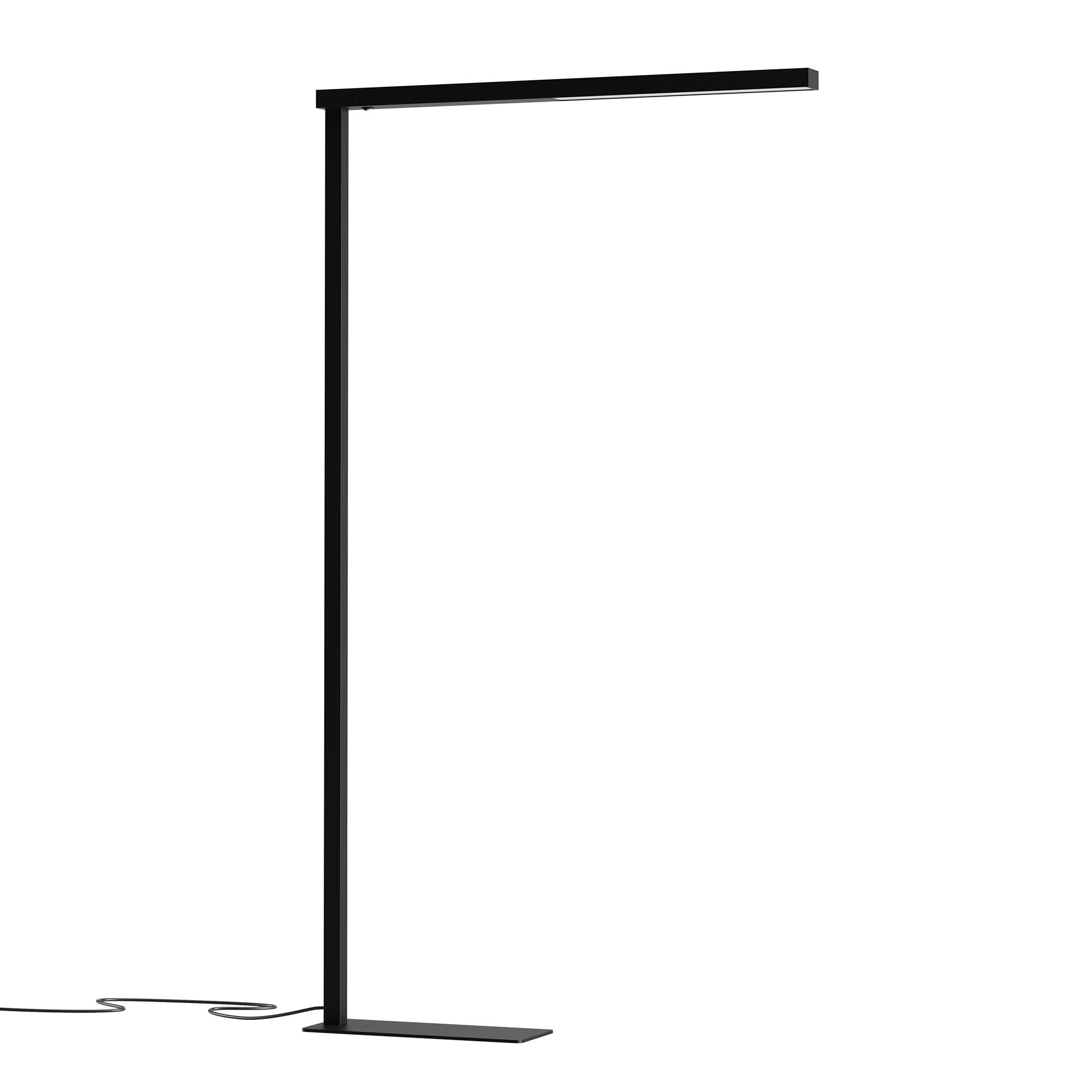 алуминиев профил, основа от стомана, всички метални елементи са в черен цвят с пясъкоструйно покритие, разсейватели от сатениран поликарбонат за недиректна светлина и призматичен полистирен за директно осветление, бутон ON/OFF в основата на рамото