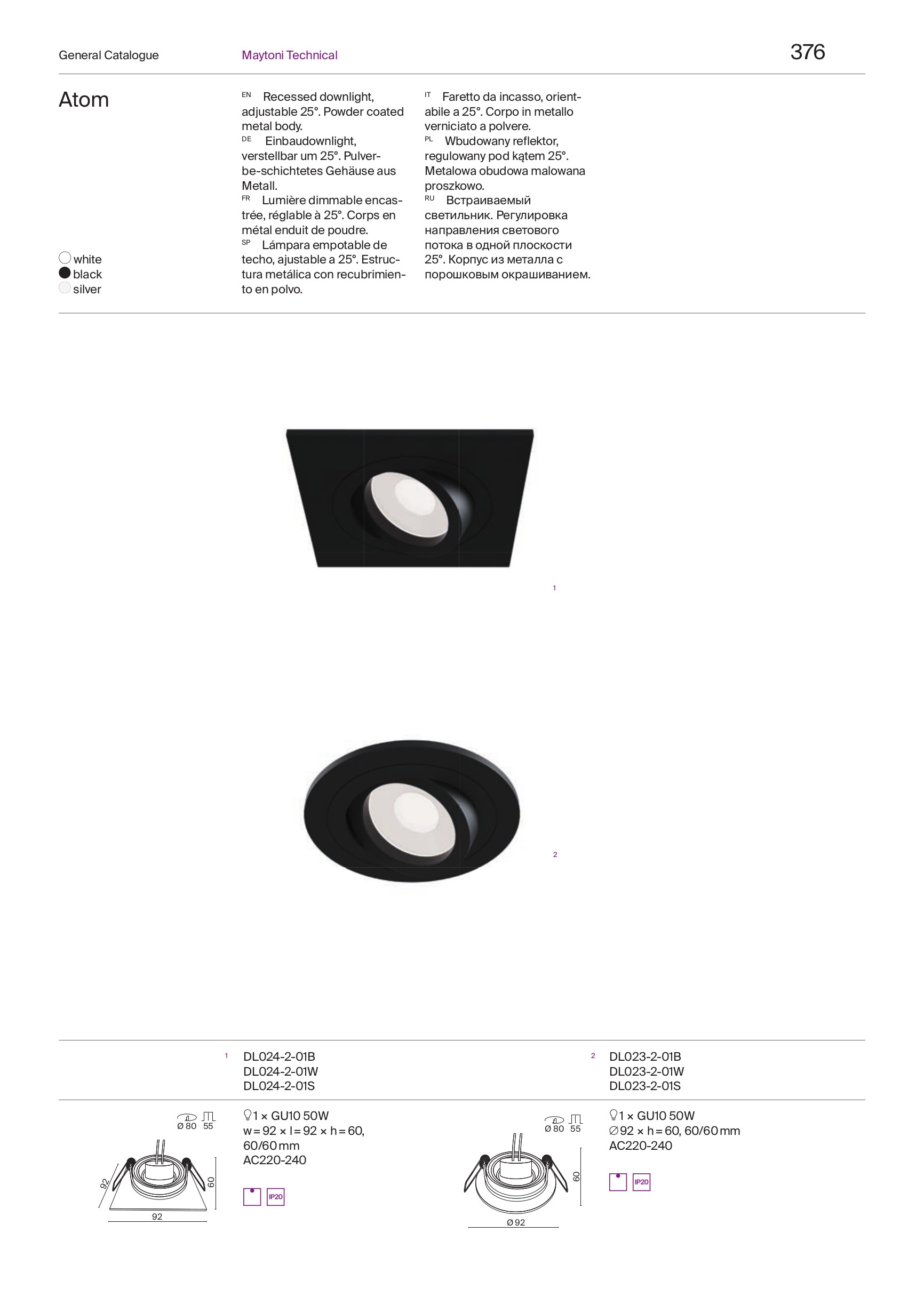 Ел. мощност 1 х 50 W Размери 9.2см x 9.2см x 6см Производител Maytoni, Германия
