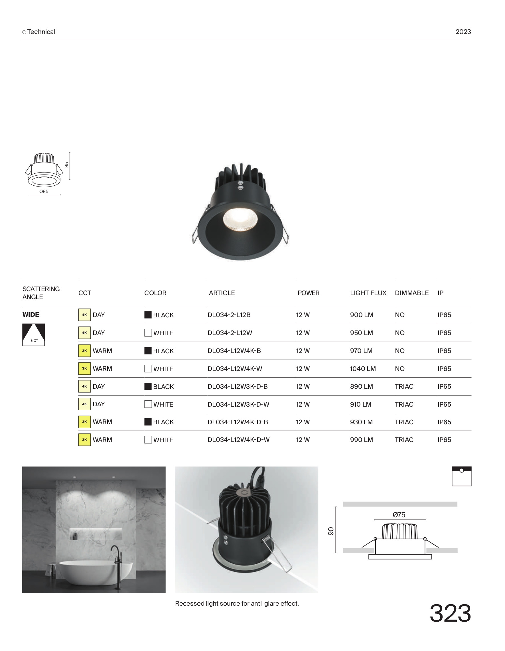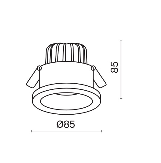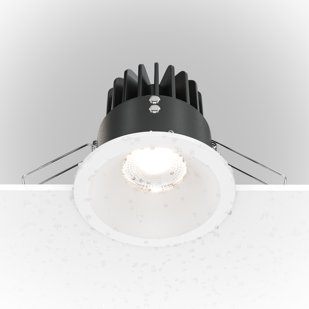 отлят алуминий в бял цвят, охлаждащ радиатор в черно, източникът на светлина е вграден дълбоко в тялото за избягване на отблясъци, димируема