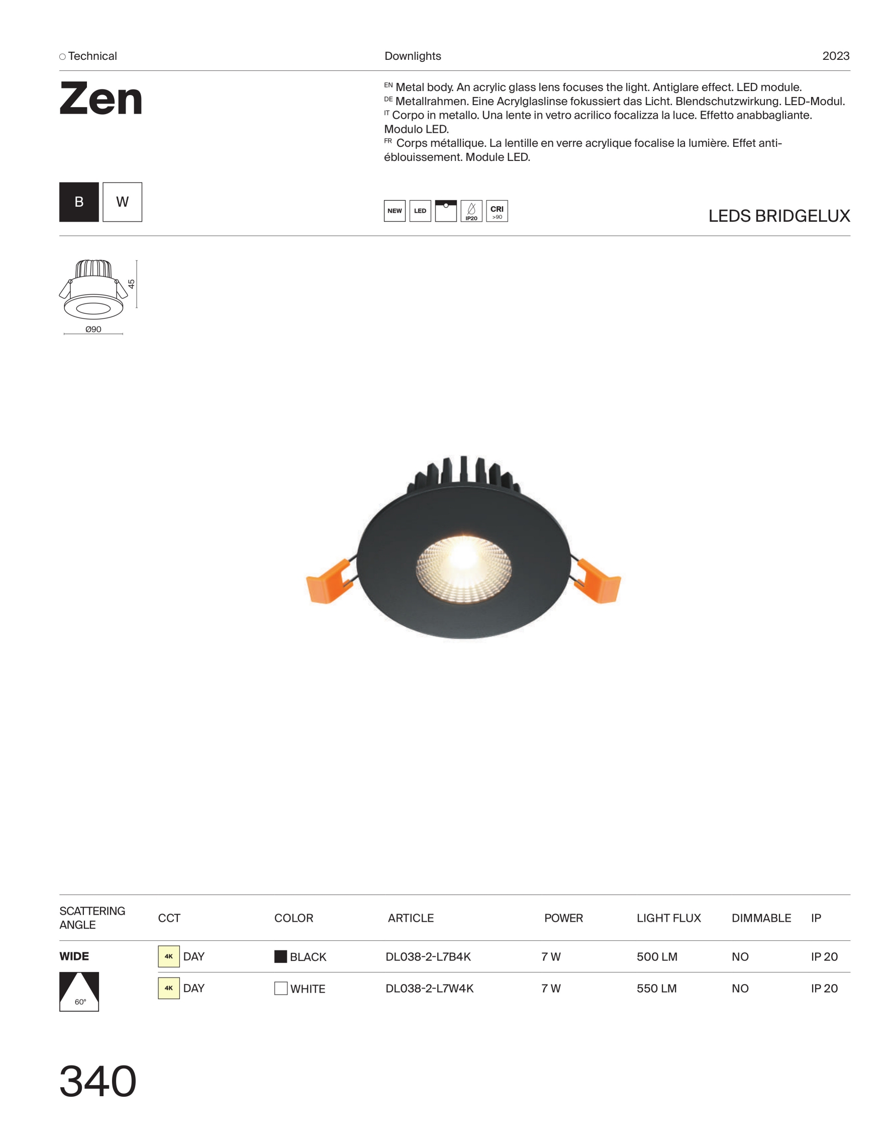 Осветителното тяло DL038-2-L7W4K представлява луничка / луна в съвременен стил. DL038-2-L7W4K е от категорията осветителни тела и е подходящо за осветяване на различни помещения и пространства като: всекидневна / хол, спалня, кухня, трапезария, коридор, антре, стълбище, офис.