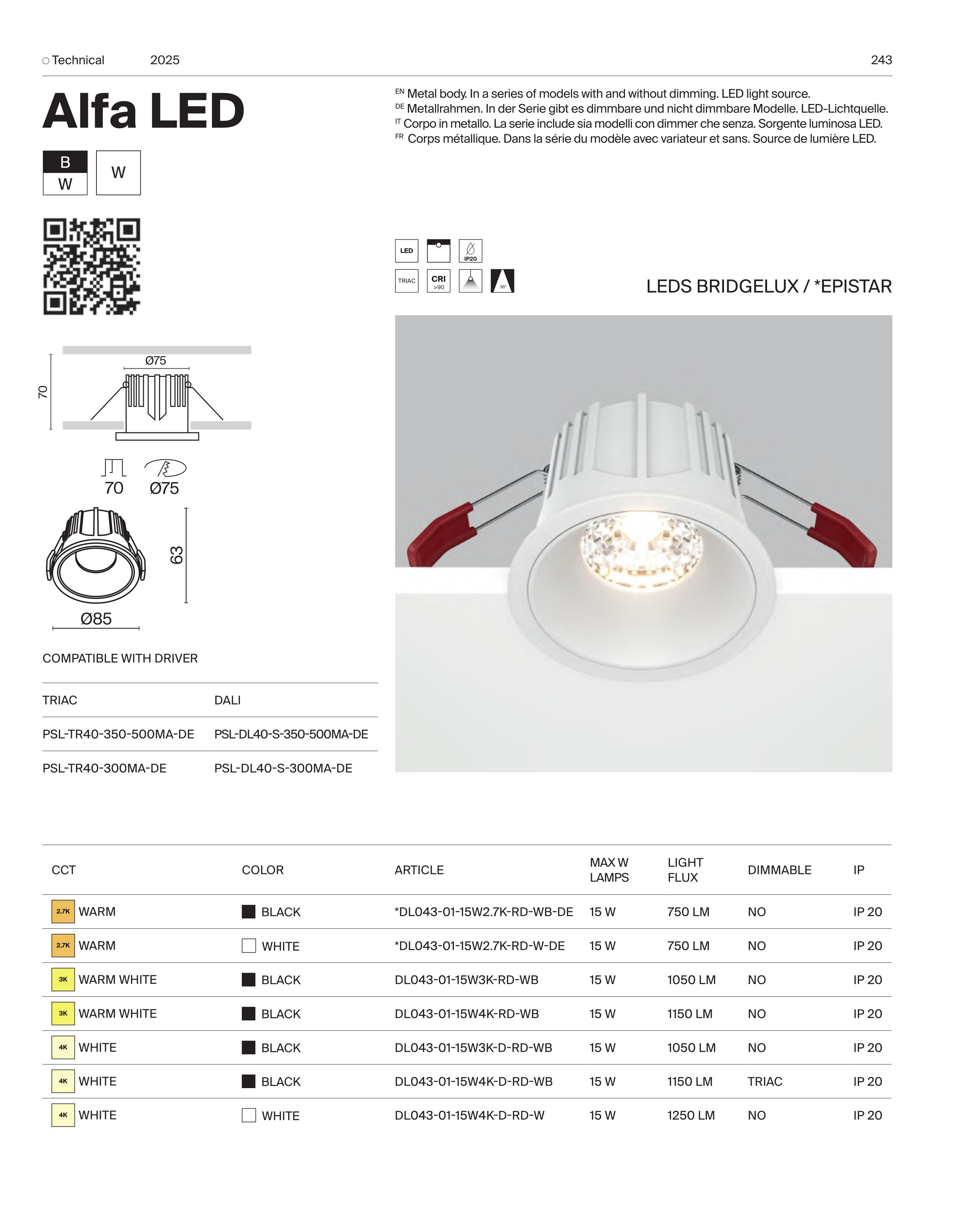 луничка / луна DL043-01-15W2.7K-RD-W-DE