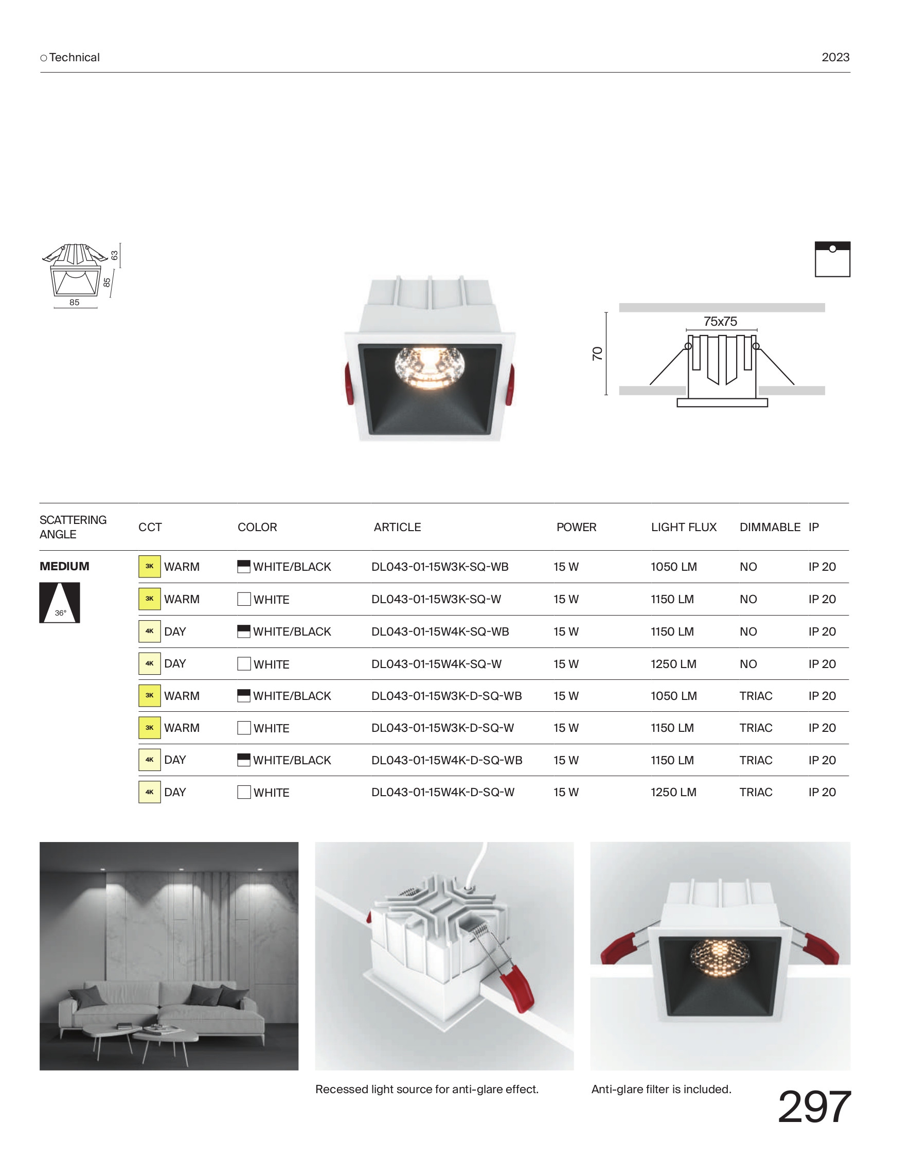 луничка / луна DL043-01-15W3K-D-SQ-WB