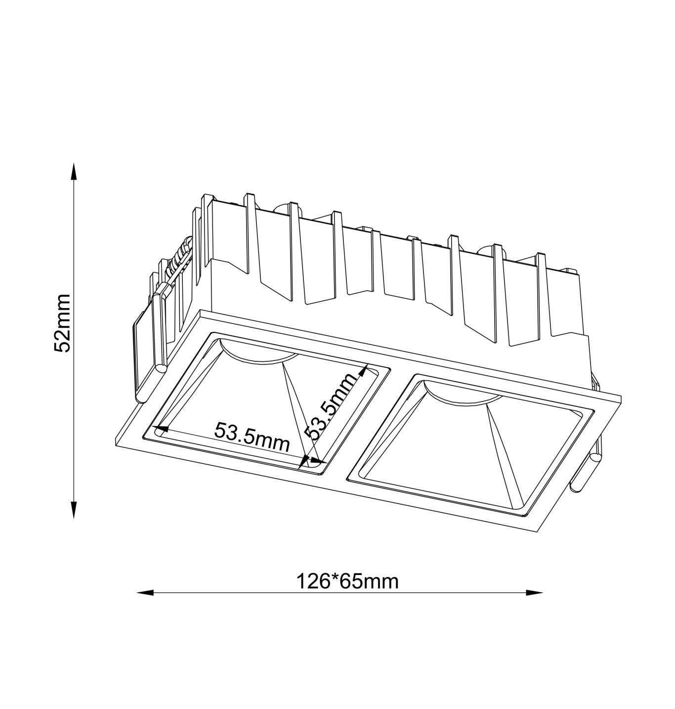 метално тяло в бял цвят, светлоотразител в бяло с включен филтър против отблясъци, източникът на светлина е поставен навътре за да се избегнат отблясъците