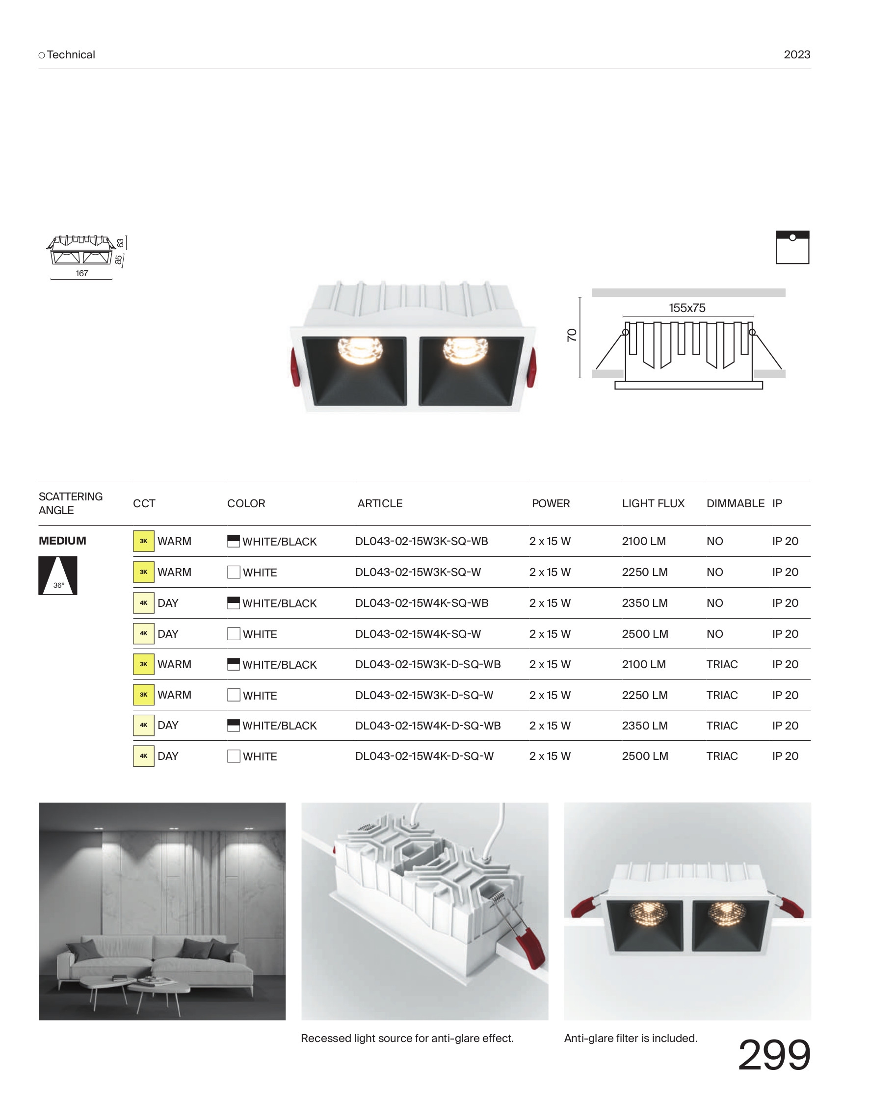 Осветителното тяло DL043-02-15W3K-D-SQ-WB ще осигури комфорт и естетика във всяко помещение, в което се постави. Цялостната визия и дизайн на лампата и вложените в изработката й материали, като метално тяло в бял цвят, светлоотразител в черно с включен филтър против отблясъци, източникът на светлина е поставен навътре за да се избегнат отблясъците, наличен димер за регулиране силата на светене, ще допринесат за един неповторим стил. Благодарение на дългогодишния опит, качествените материали и строгия контрол на качеството на изработка на производителя Maytoni (Германия), DL043-02-15W3K-D-SQ-WB е на високо европейско ниво.