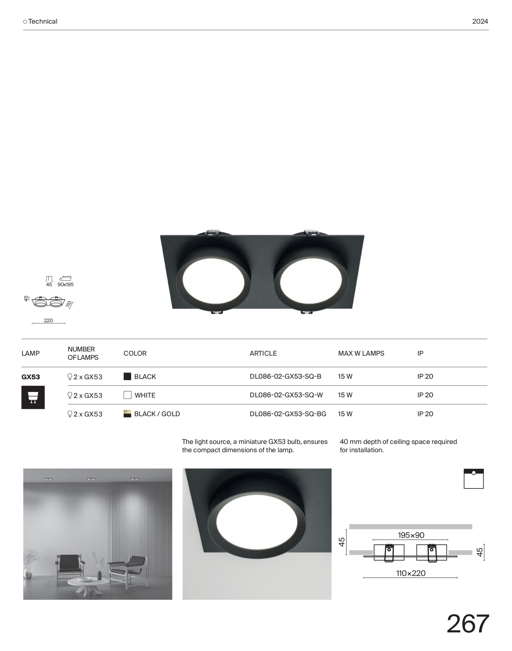 Осветителното тяло DL086-02-GX53-SQ-B представлява луничка / луна в съвременен стил. DL086-02-GX53-SQ-B е от категорията осветителни тела и е подходящо за осветяване на различни помещения и пространства като: всекидневна / хол, спалня, кухня, трапезария, коридор, антре, стълбище, офис.