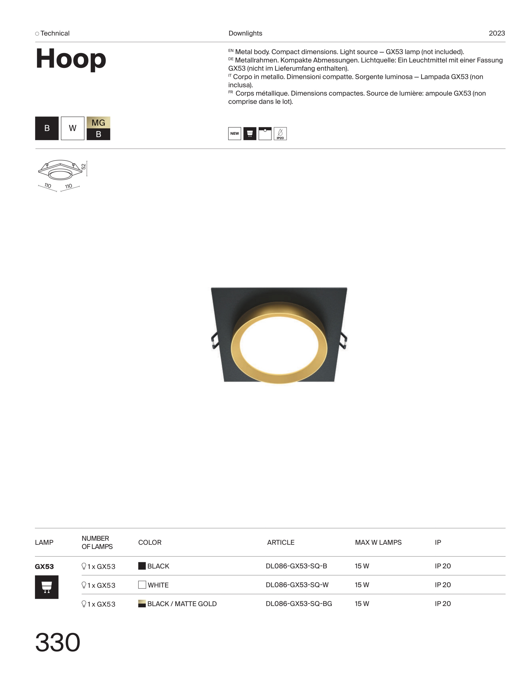 Магазини за осветителни тела ОРИОН представят осветителното тяло DL086-GX53-SQ-W, което представлява луничка / луна в съвременен стил.