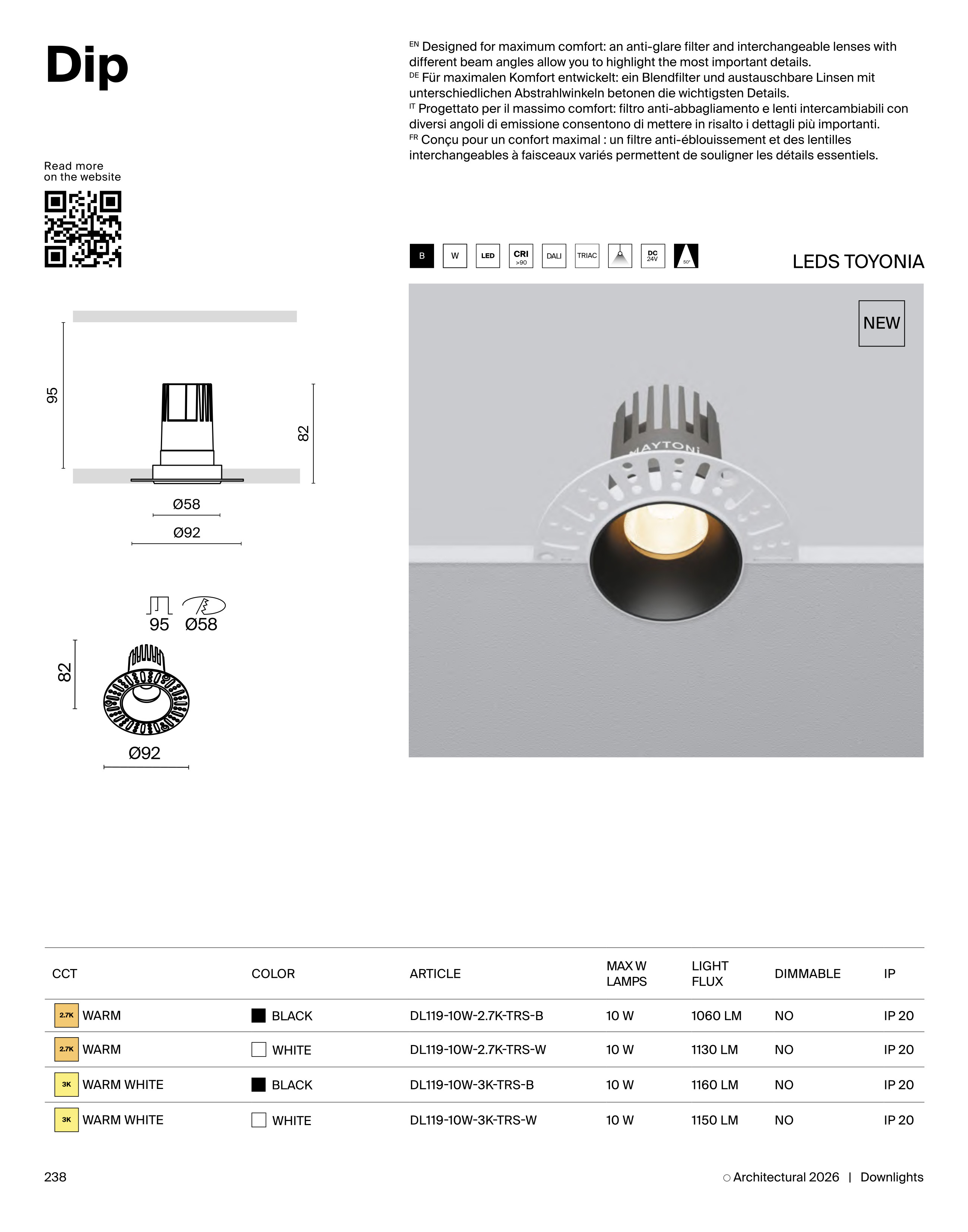 Осветителното тяло DL119-10W-3K-TRS-B представлява лед луничка / луна, спот лампа в съвременен стил. DL119-10W-3K-TRS-B е от категорията и е подходящо за осветяване на различни помещения и пространства като: всекидневна / хол, спалня, кухня, трапезария, коридор, антре, стълбище, офис.