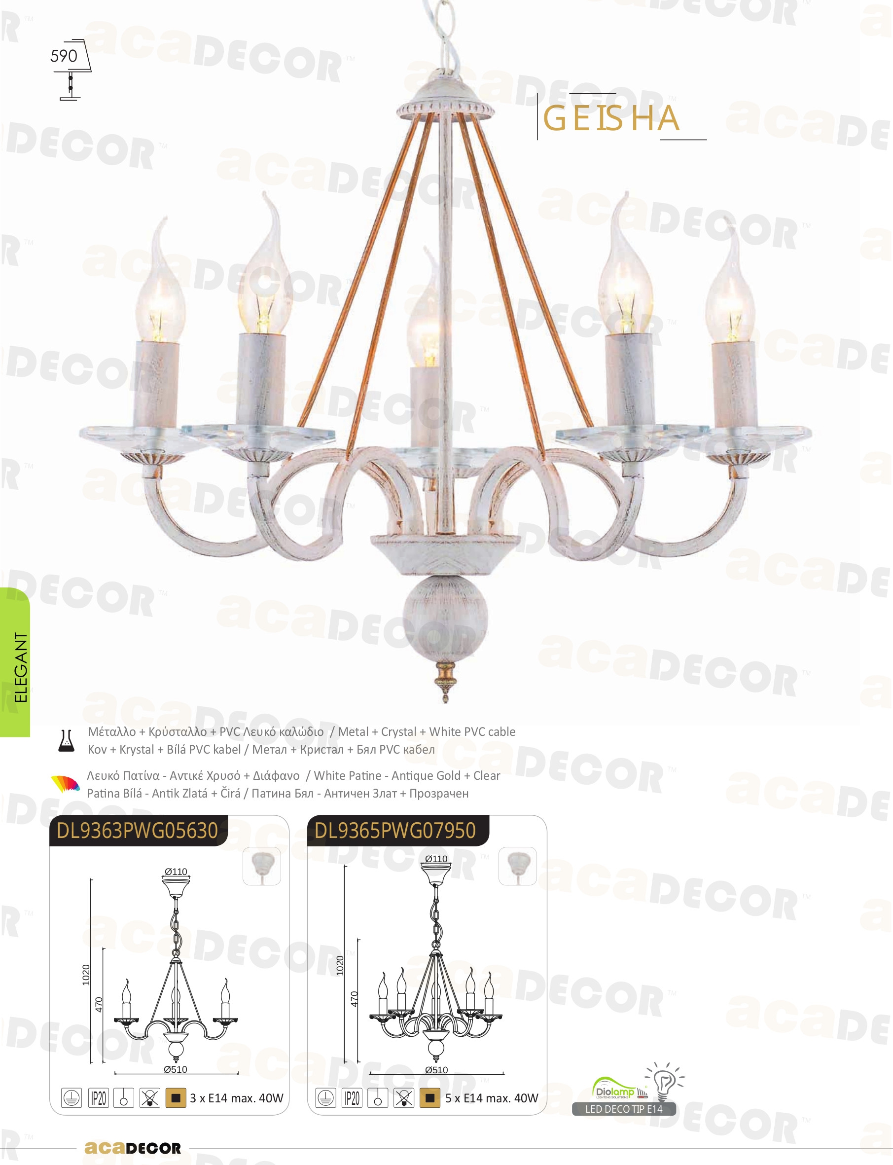 Благодарение на дългогодишния успешен опит в областта на производството на лампи на ACA-Lighting (Гърция), качеството на осветителното тяло е на високо европейско ниво.