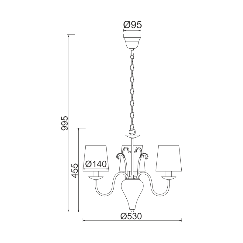 Ел. мощност 5 х 40 W Размери Ф53см x 45.5см x 99.5см Производител ACA-Lighting, Гърция