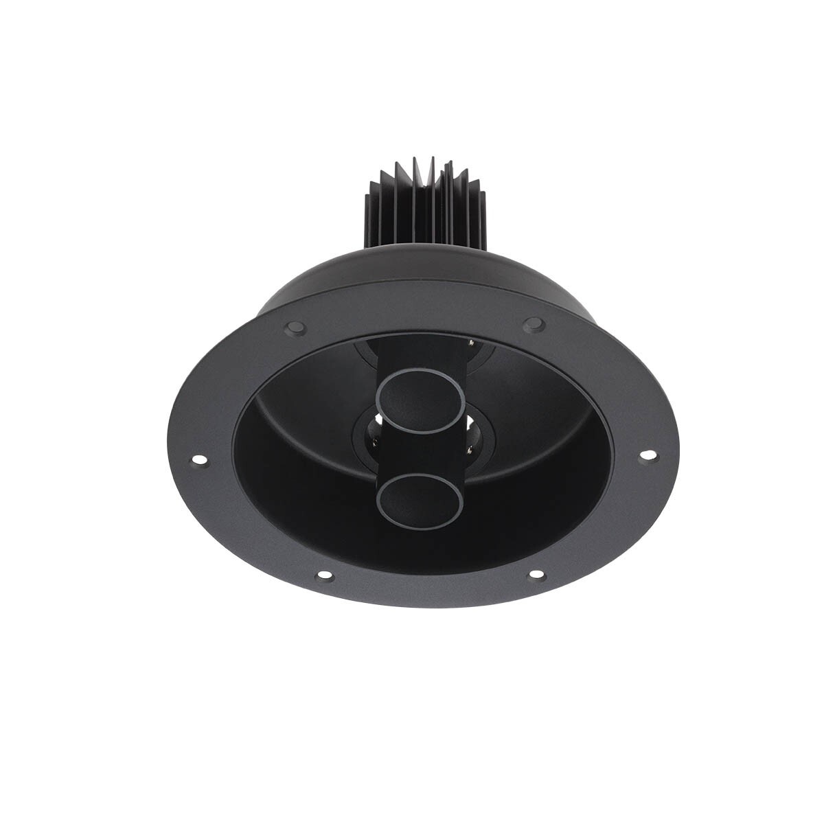 алуминий в черен матов цвят, рефлектор от поликарбонат със сребро, разсейвателят е от прозрачен поликарбонат със стойност UGR<10, рефлекторът може да се върти на 355° и да се накланя на страни под ъгъл от 65°, декоративен ринг от алуминий в черно