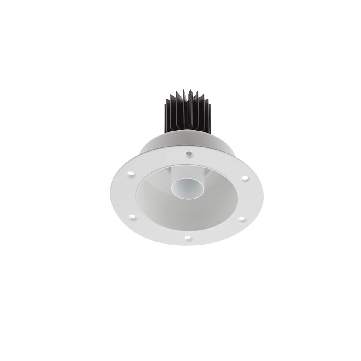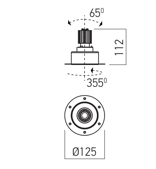 алуминий в бял матов цвят, рефлектор от поликарбонат със сребро, разсейвателят е от прозрачен поликарбонат със стойност UGR<10, рефлекторът може да се върти на 355° и да се накланя на страни под ъгъл от 65°, декоративен ринг от алуминий в бяло