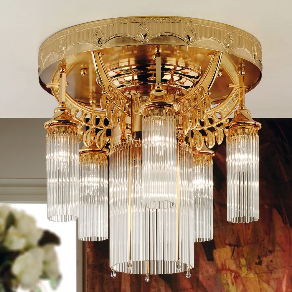 За стила и естетиката на интериора в изключително висока степен допринасят, както цялостната визия и дизайн на осветителното тяло, така и вложените в изработката висококачествени материали, като масивен месинг с 24 карата златно покритие, стъклени пръчици с цилиндрична форма.