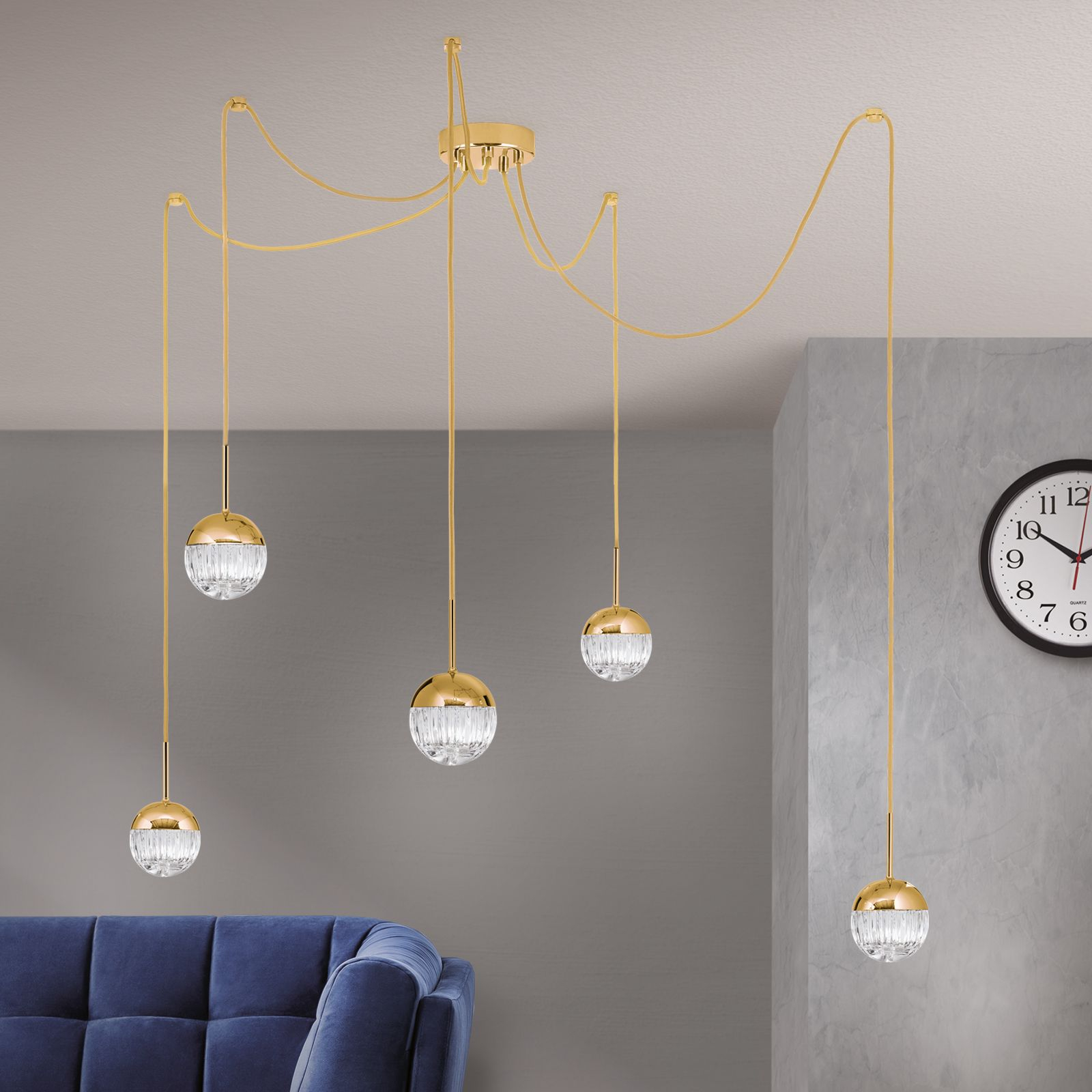 Осветителното тяло DLU 1737/5 gold/499 представлява лед полилей в съвременен стил. DLU 1737/5 gold/499 е от категорията и е подходящо за осветяване на различни помещения и пространства като: всекидневна / хол, спалня, кухня, трапезария, офис.