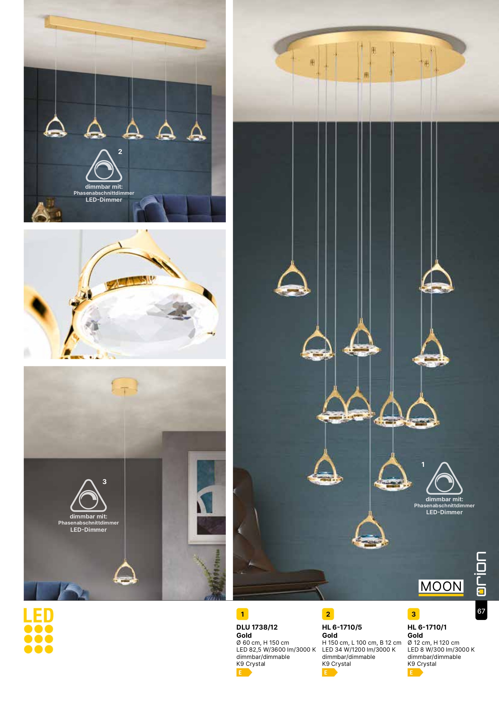 Магазини ОРИОН представят осветителното тяло DLU 1738/12 gold (LED82,5W/3600lm/3000K), което представлява полилей в съвременен, дизайнерски стил. Лампата е част от категорията полилеи и е подходяща за различни помещения и пространства, като например всекидневна / хол, спалня, кухня, трапезария, офис.