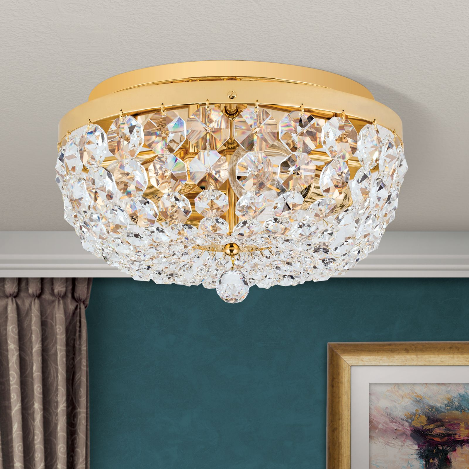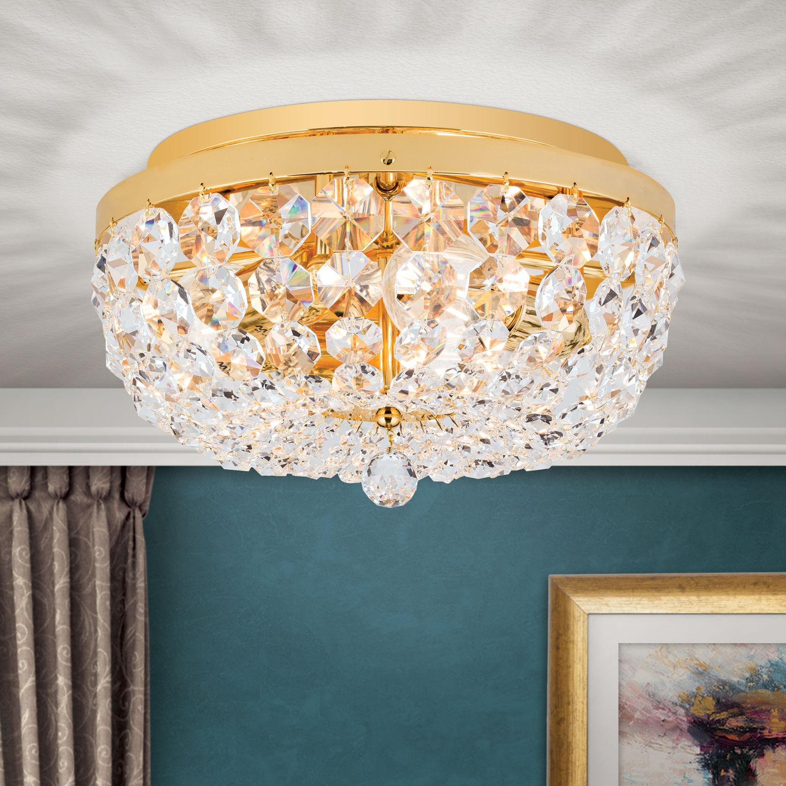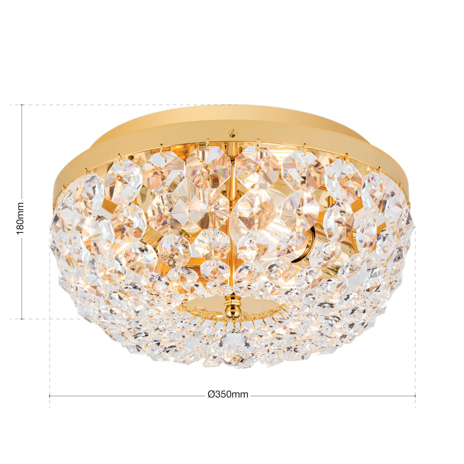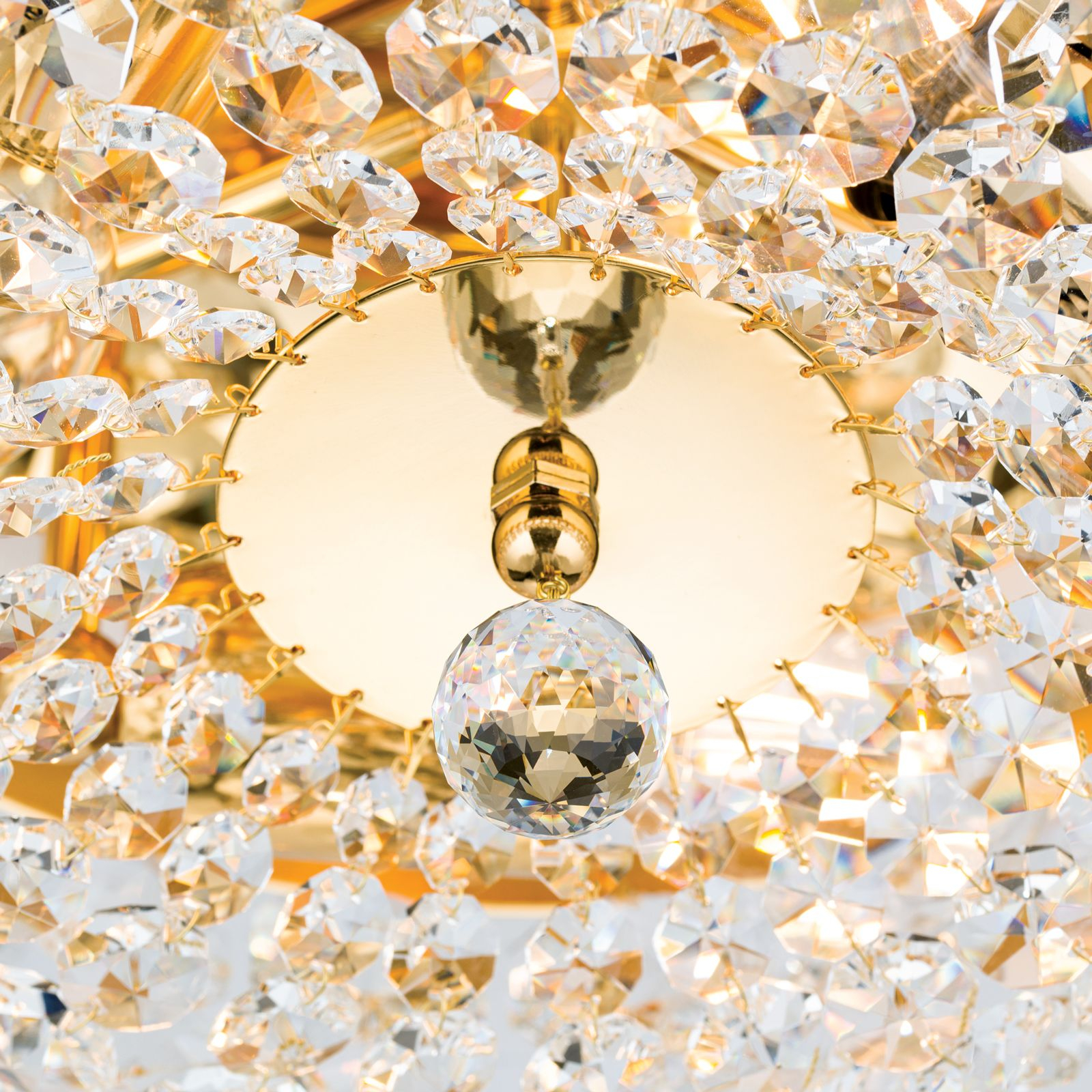 масивен месинг с 24 карата златно покритие, вериги от осмоъгълни кристали и кристали SCHÖLER CRYSTAL® под форма на фасетирана капка, огледална декоративна плоча, голяма кристална топка