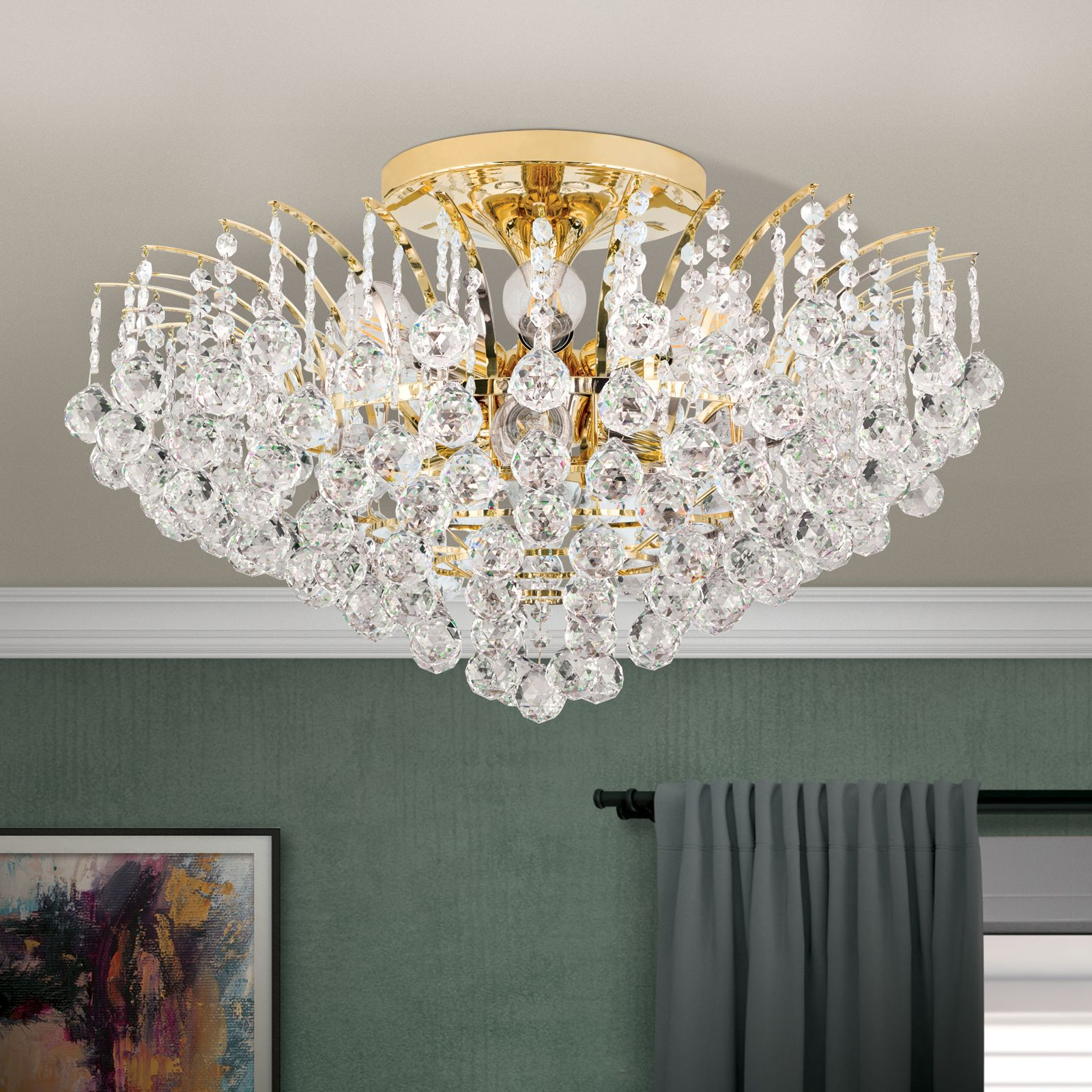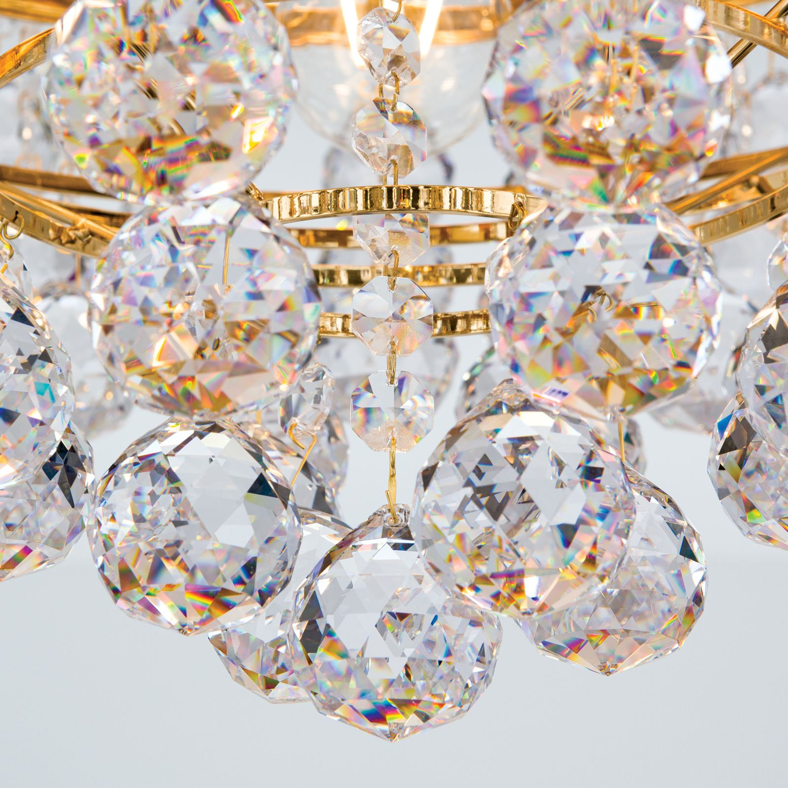 позлатен с 24 карата злато масивен месинг, многобройни фасетирани кристални топки Asfour Crystal, прикрепени към филигранни дъги, осмоъгълни кристални елементи