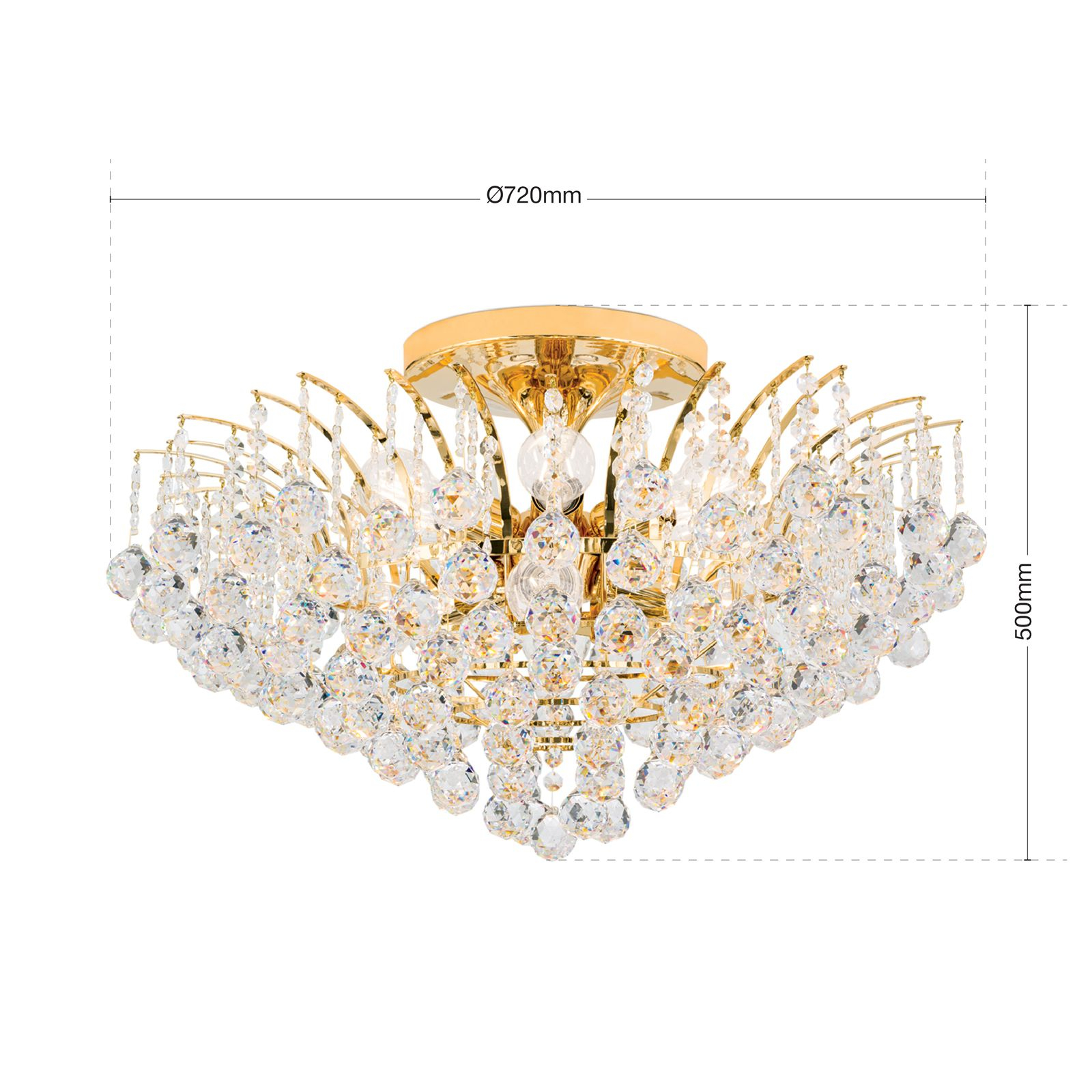 Осветителното тяло DLU 2324/10/72 gold (10xE27) представлява плафон в класически стил. DLU 2324/10/72 gold (10xE27) е от категорията осветителни тела и е подходящо за осветяване на различни помещения и пространства като: всекидневна / хол, спалня, кухня, трапезария, офис.