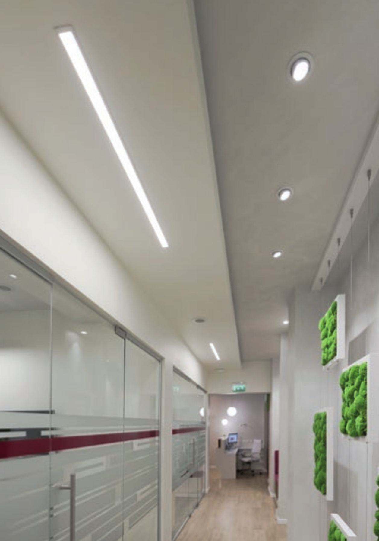 лят под налягане алуминий в бяло, система за регулиране на позицията от стоманена ламарина в бяло, която позволява въртене на 350° около вертикалната ос и 60° около хоризонталната ос, рефлектор от фасетиран гланциран полимер, дифузьор от поликарбонат