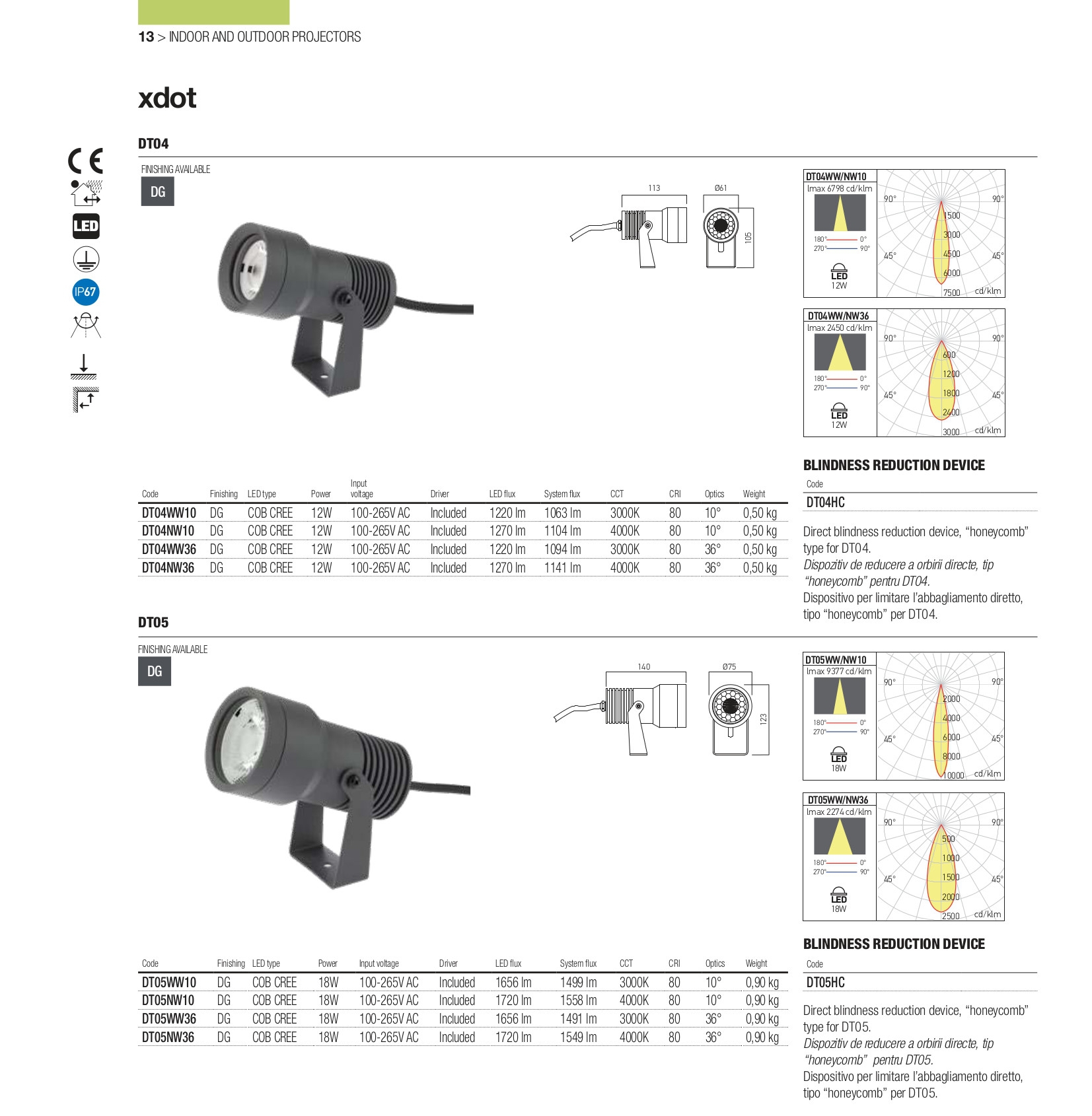 Осветителното тяло DT05WW36 ще осигури комфорт и естетика във всяко помещение, в което се постави. Цялостната визия и дизайн на лампата и вложените в изработката й материали, като насочващо се тяло и монтажна планка от лят алуминий в тъмно сив цвят, дисперсионна леща от поликарбонат с ъгъл 36°, захранващ кабел покрит с гума, 3x0.75 mm² с дължина 1m, PVC земен шип, ще допринесат за един неповторим стил. Благодарение на дългогодишния опит, качествените материали и строгия контрол на качеството на изработка на дизайнерската линия Redo Arelux на производителя Redo (Румъния), DT05WW36 е на високо европейско ниво.